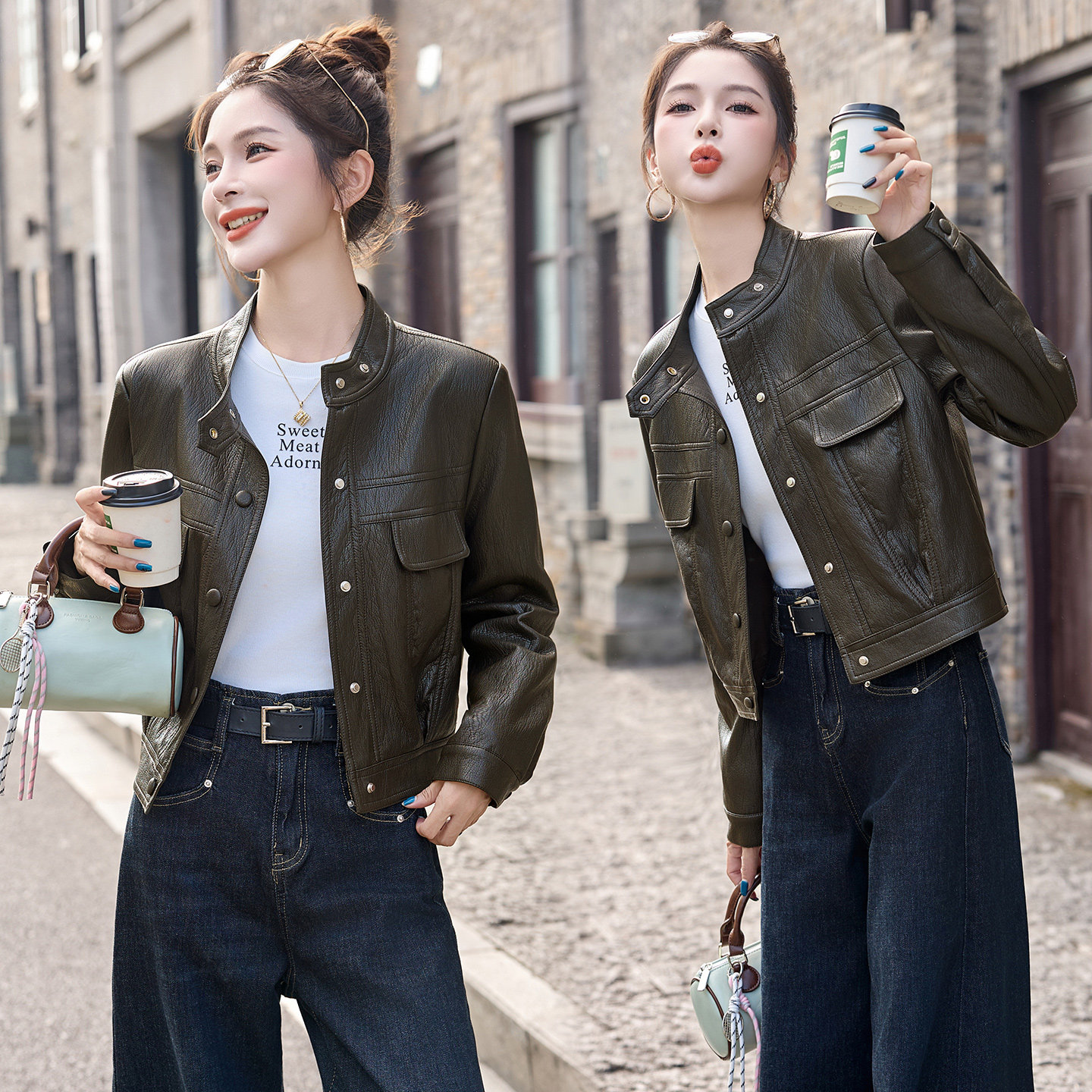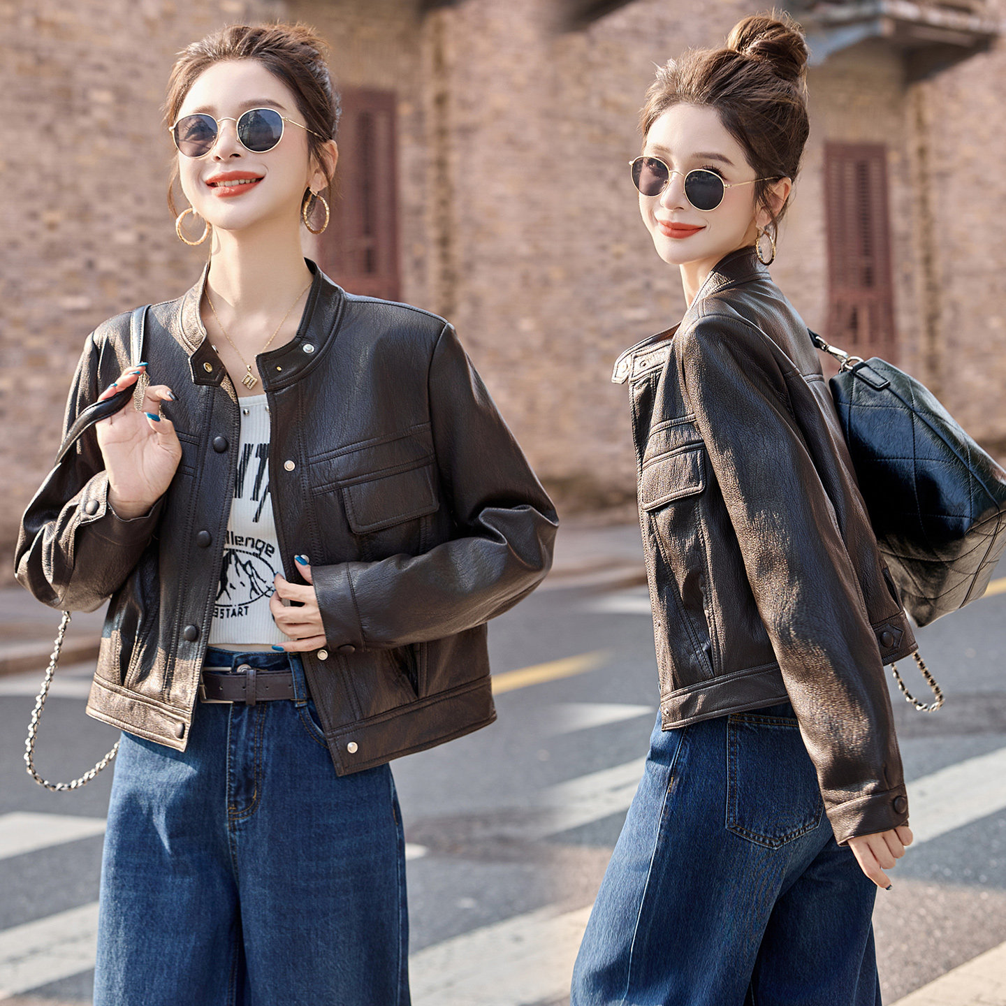 皮衣女2026新款今年流行爆款短款女装小个子气质干练立领皮上衣