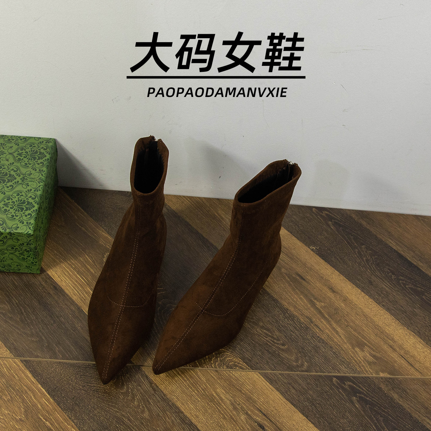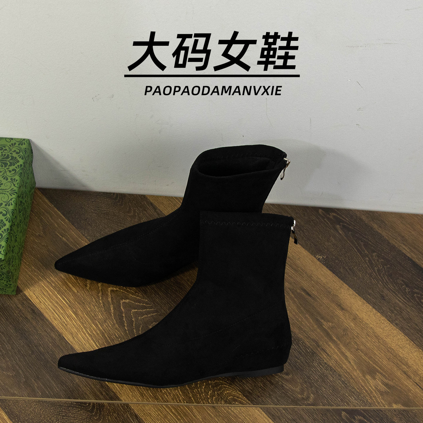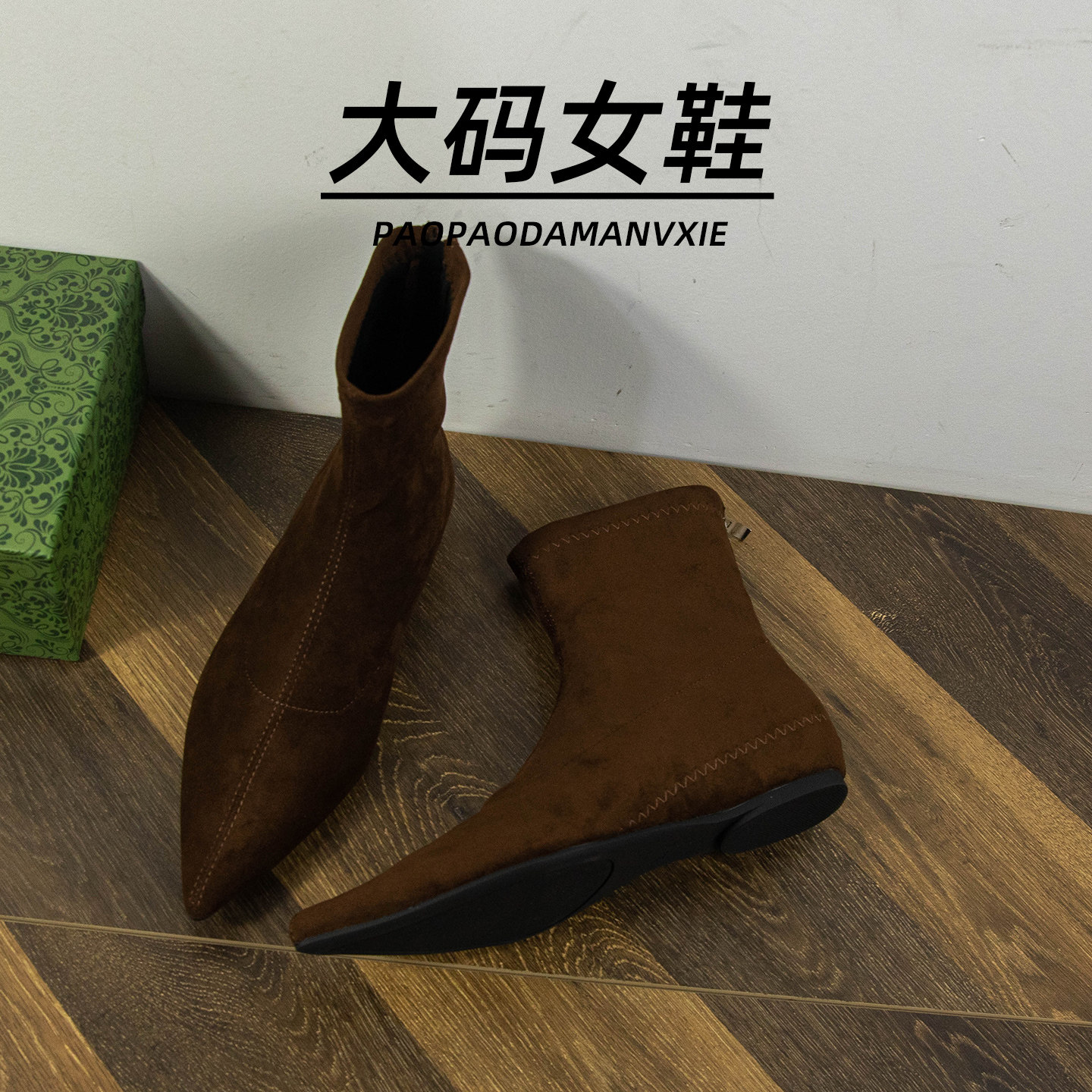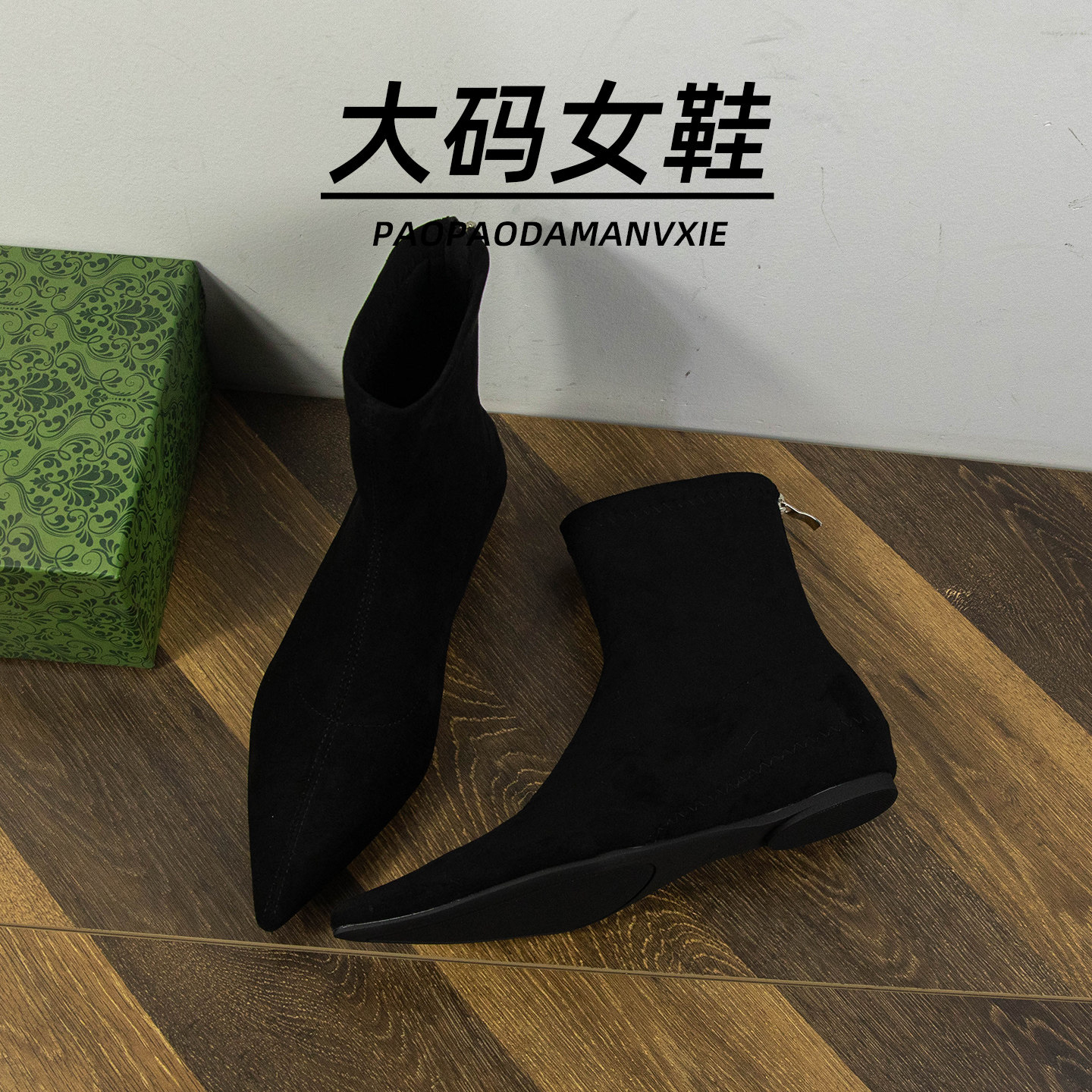 大码女靴41到43宽脚胖马丁靴复古英伦风内增高尖头加绒短靴冬季