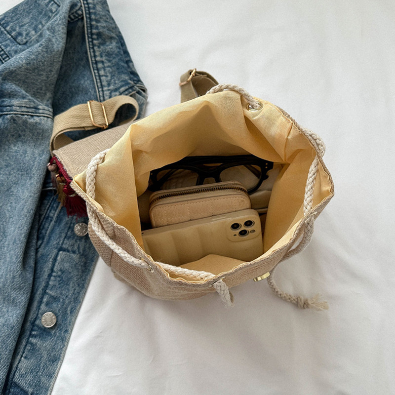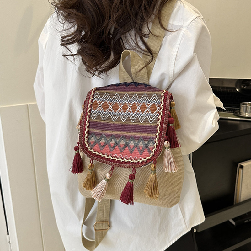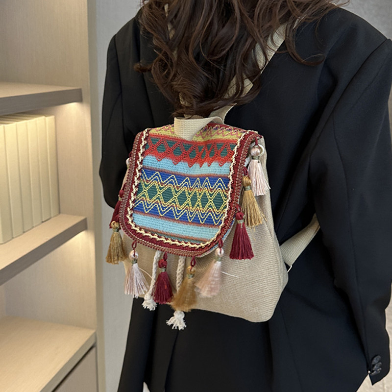 女士短途出行时尚轻便大容量流苏绣线民族风双肩包休闲散步小背包
