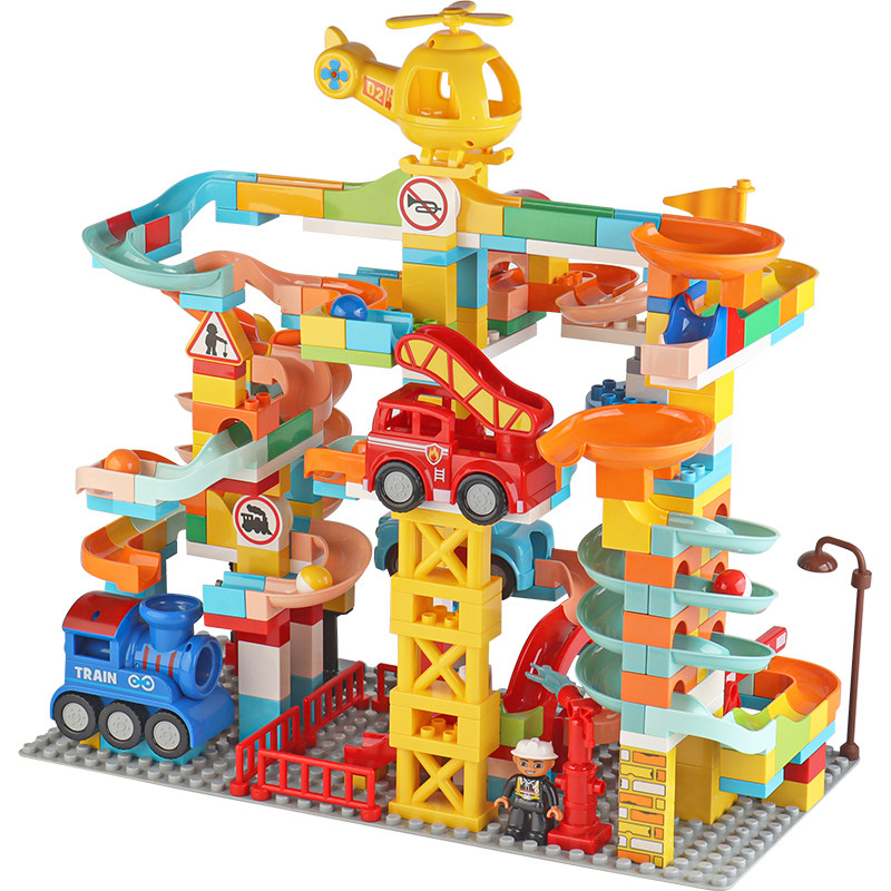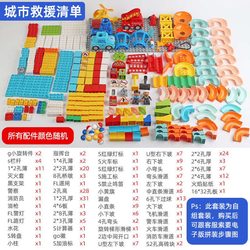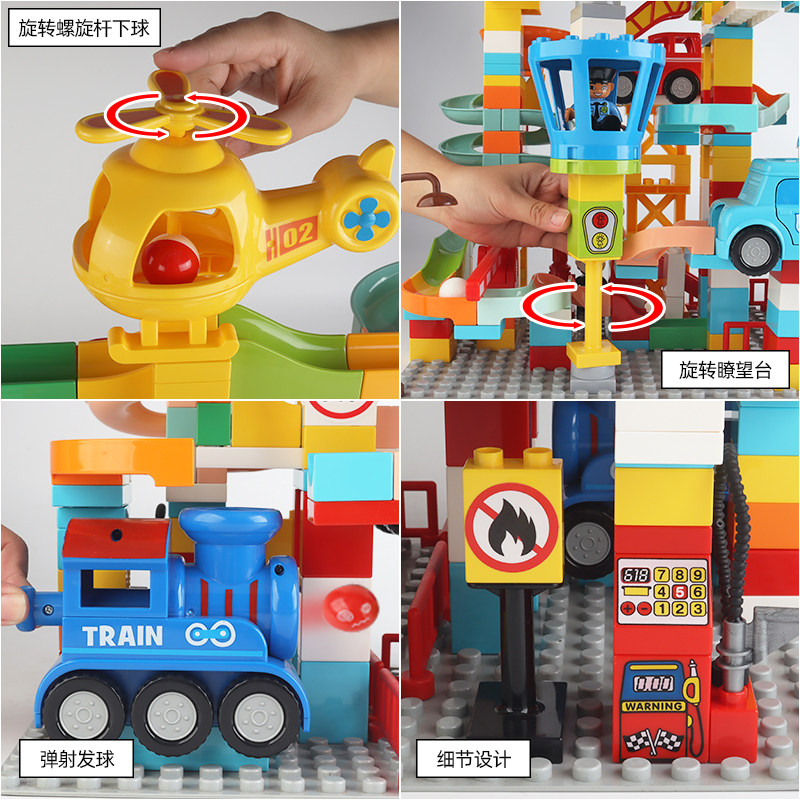 大颗粒拼装积木城市消防车火车百变滚珠小球轨道滑道儿童益智玩具