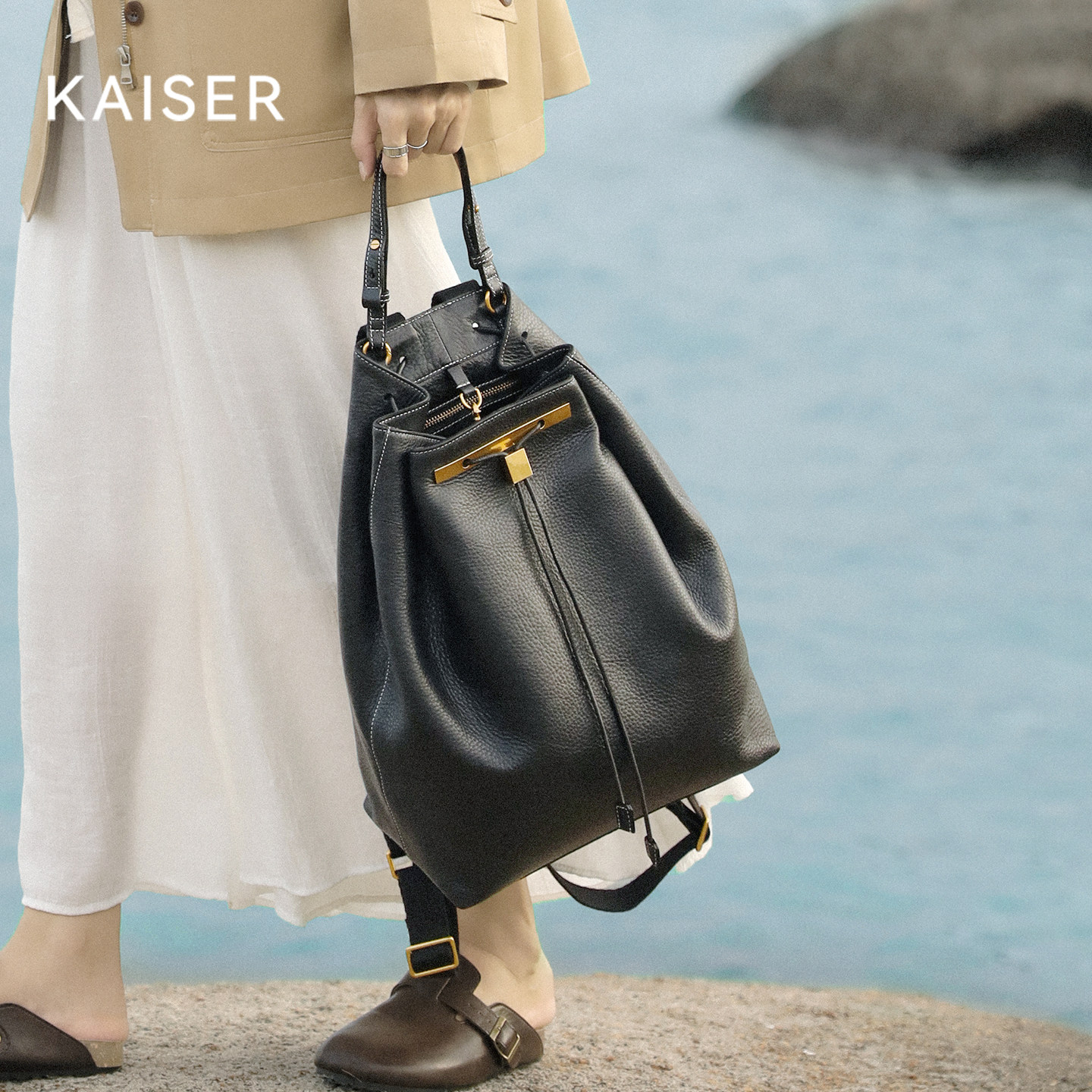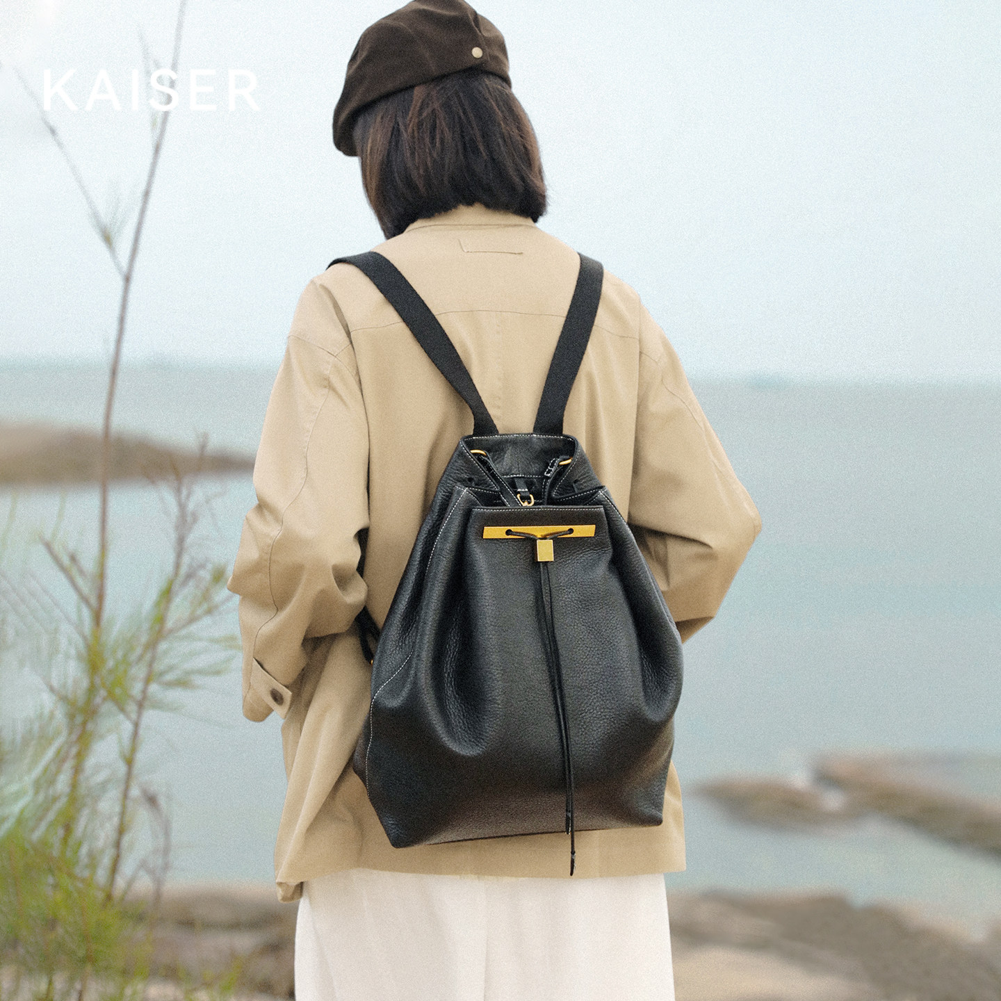 KAISER凯撒植鞣牛皮包包女大容量双肩包女款旅行包背包真皮女包