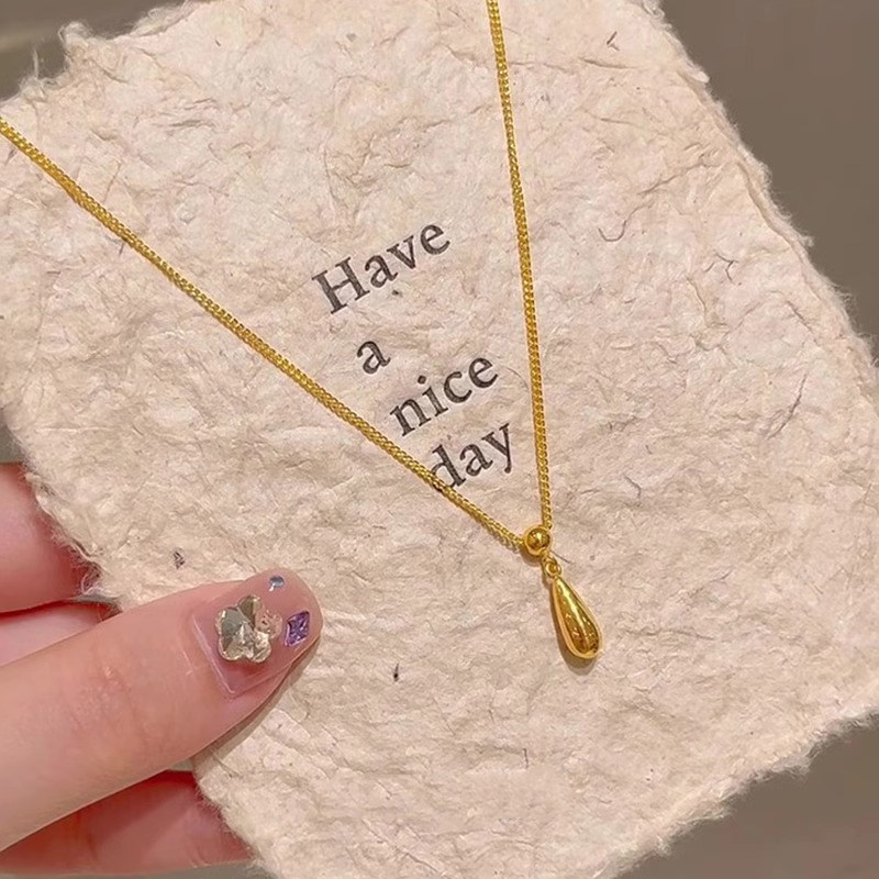 中古黄金色水滴项链女2025新款爆款轻奢高级感秋冬毛衣链精致配饰