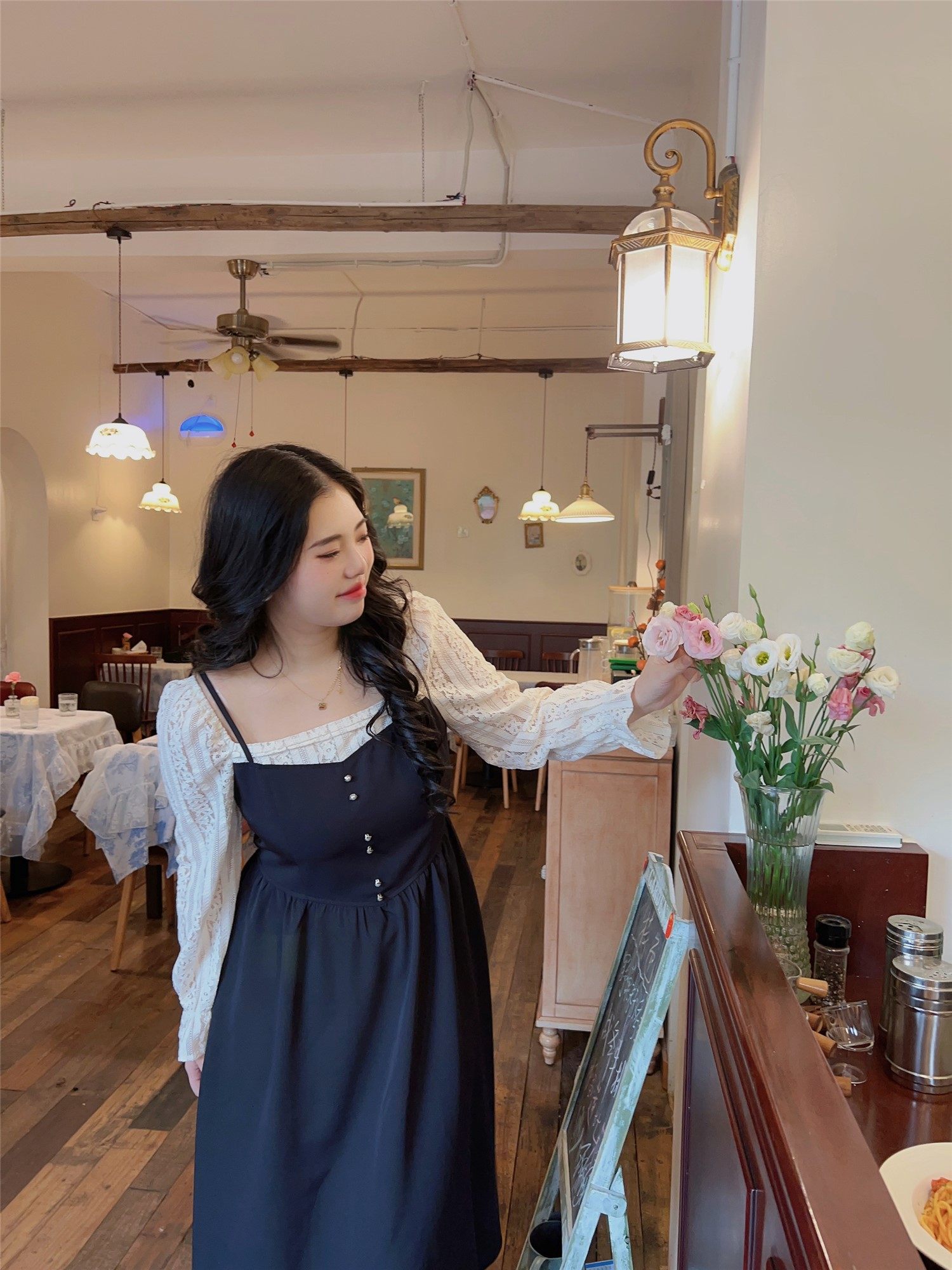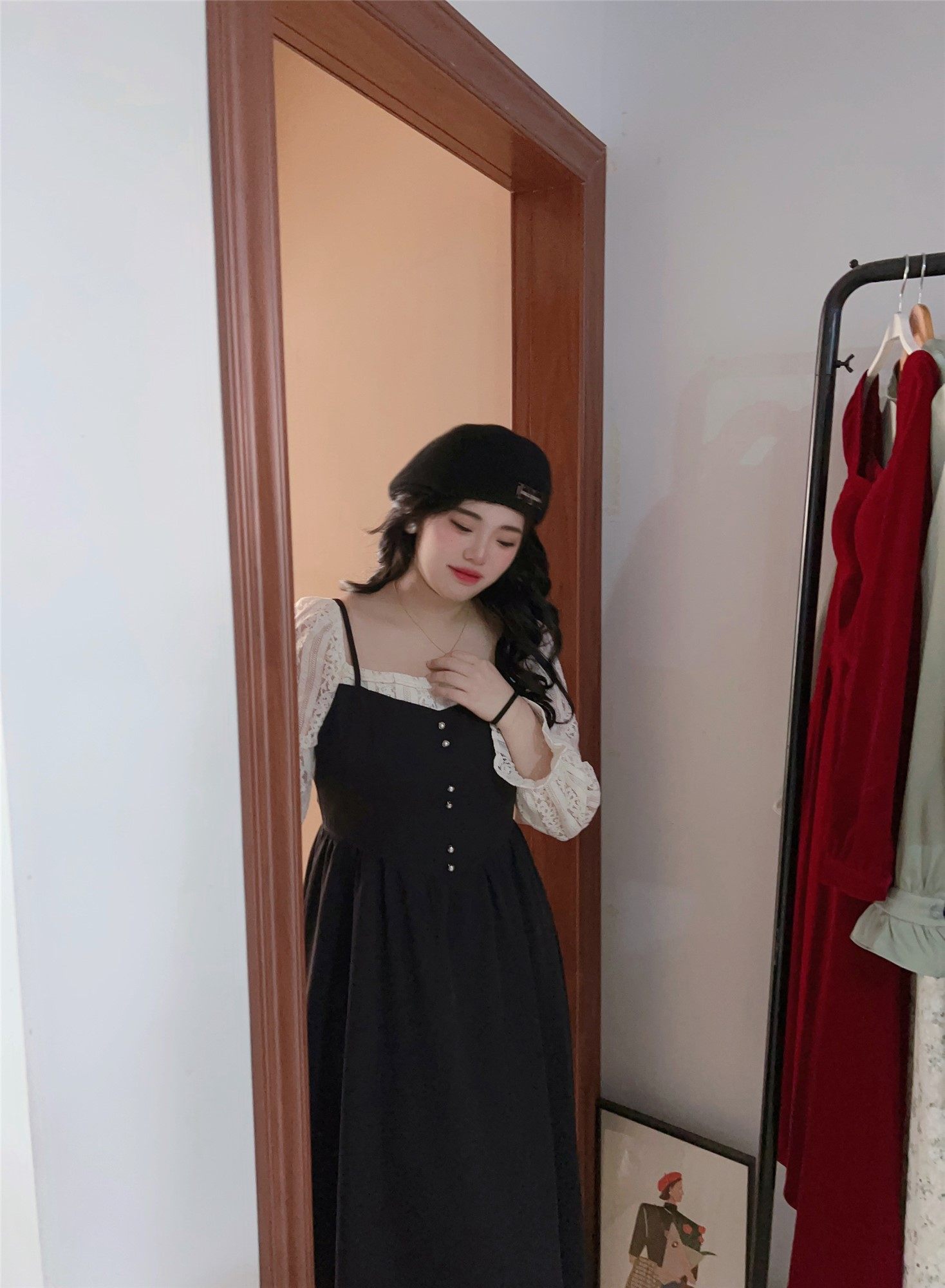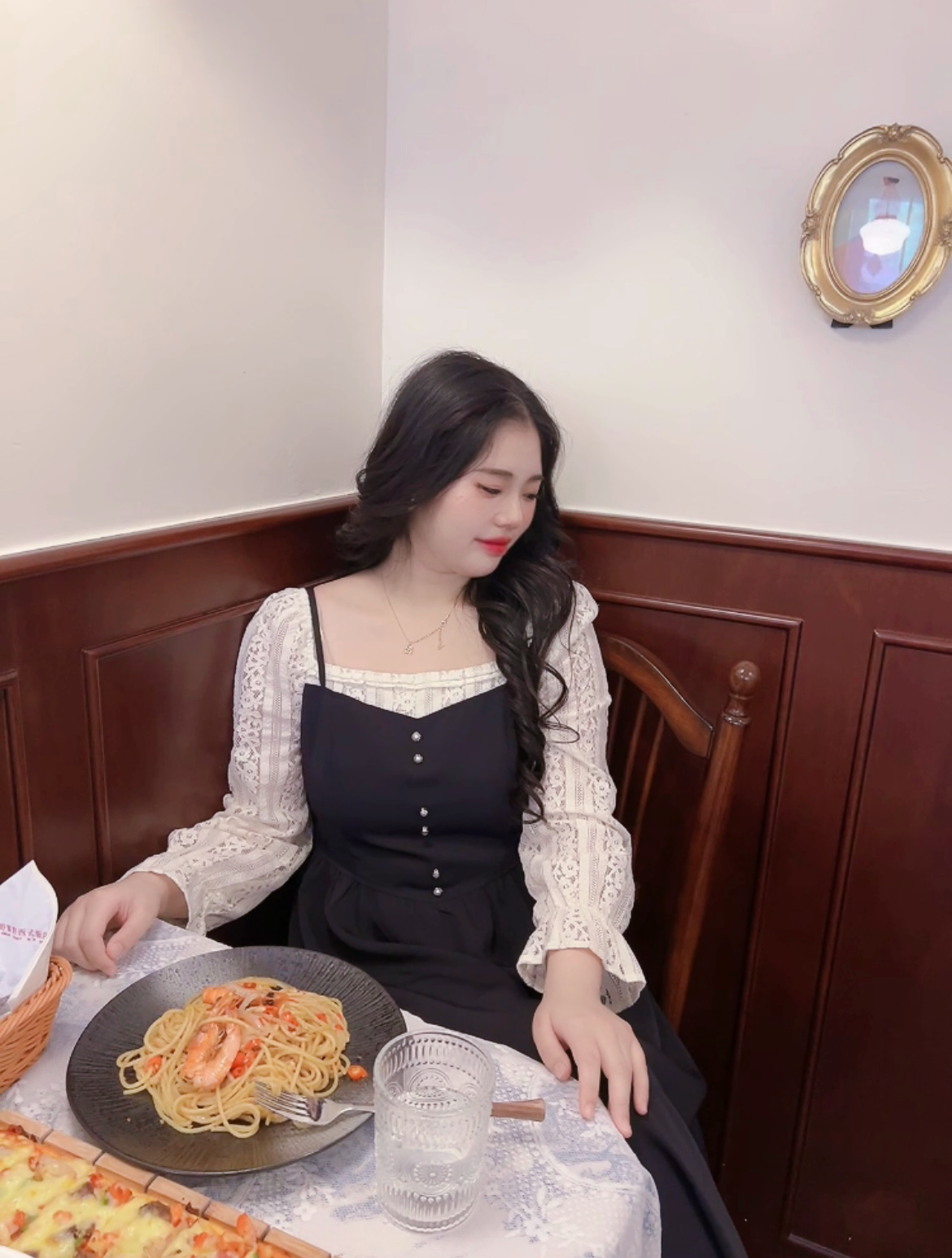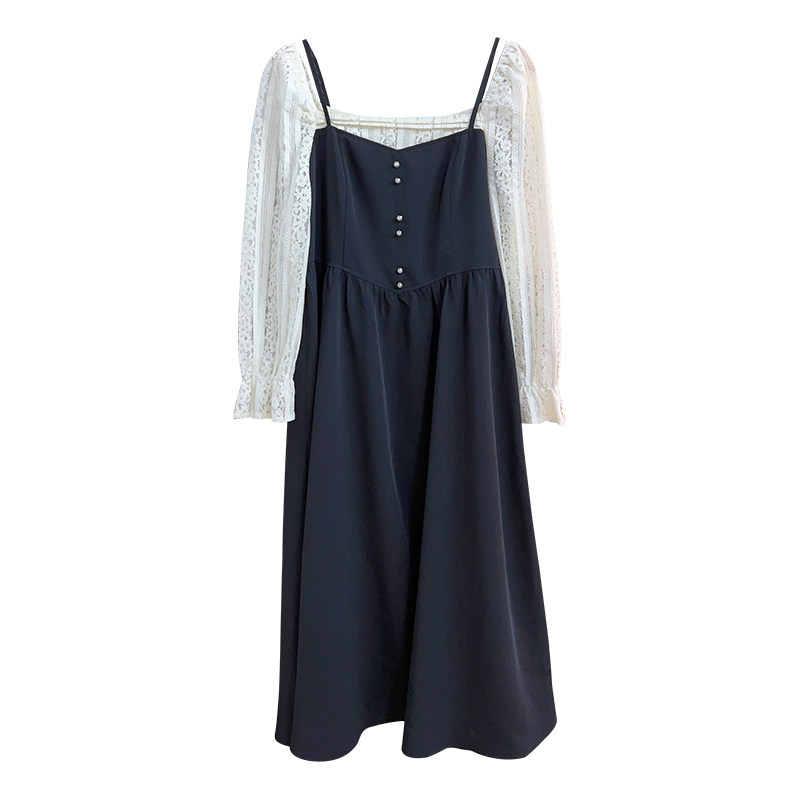 现货【自制款】假两件大码胖mm法式温柔蕾丝拼接中长款显瘦连衣裙