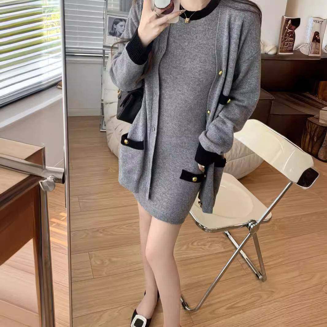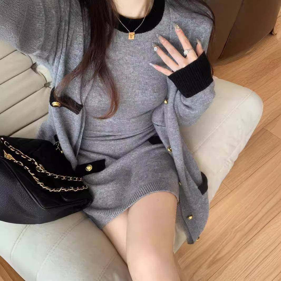 小香风外套连衣裙套装女秋冬高级感辣妹包臀短裙小个子穿搭一整套