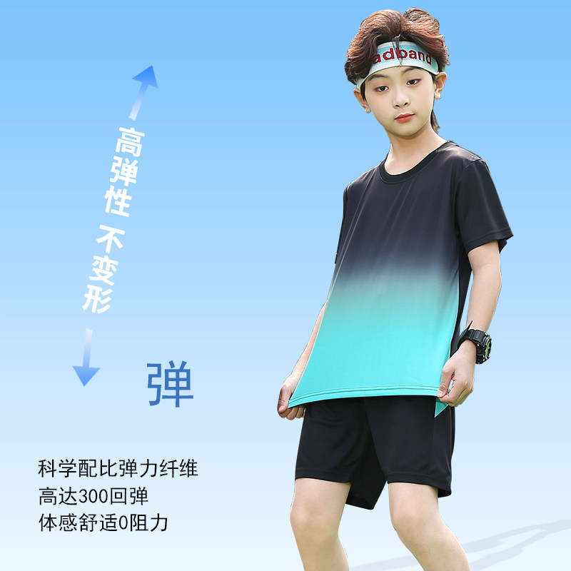 儿童速干运动套装男童夏季羽毛球网球服大童户外跑步训练短袖夏装