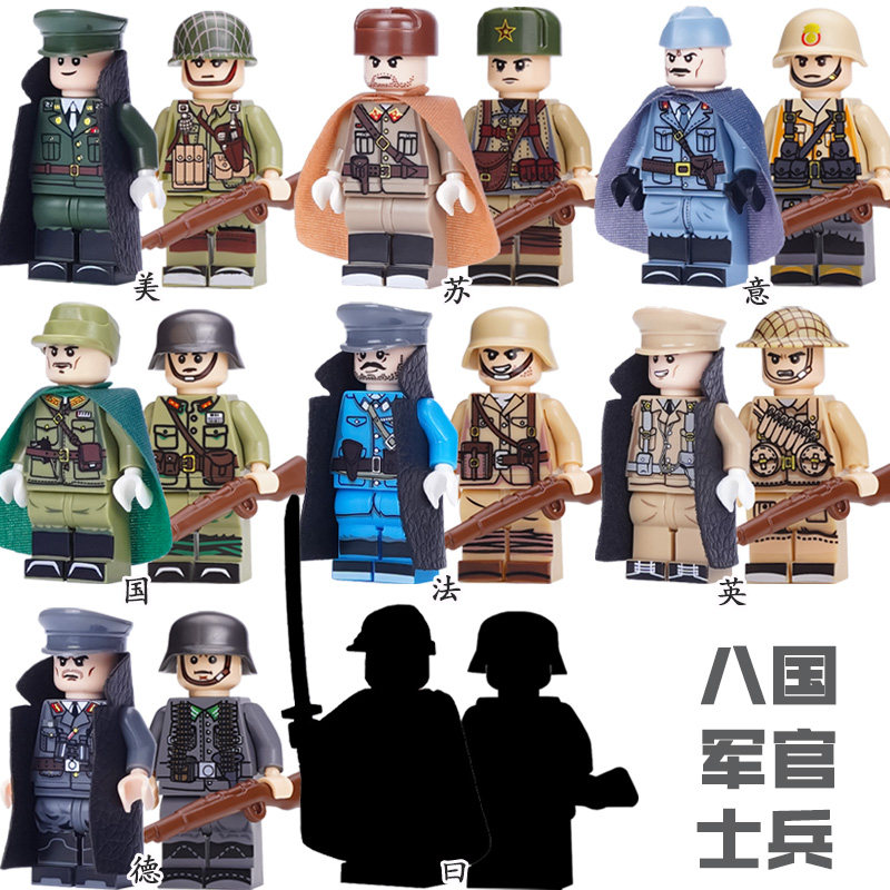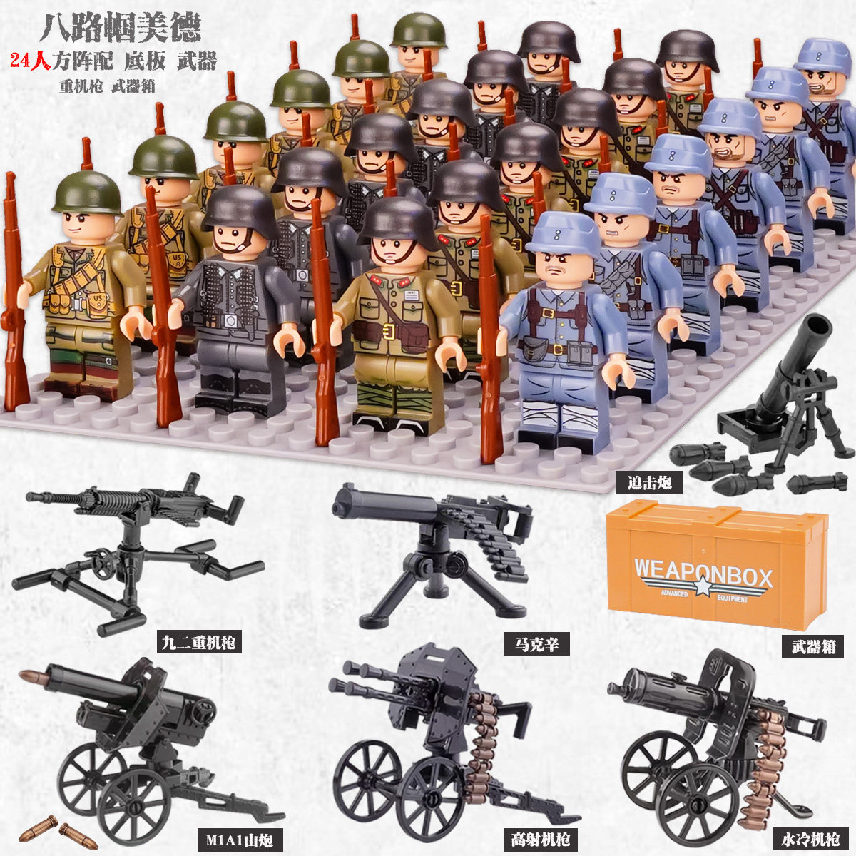 适用于乐高二战军事积木人仔士兵小人偶武器炮车男孩拼装兵人玩具