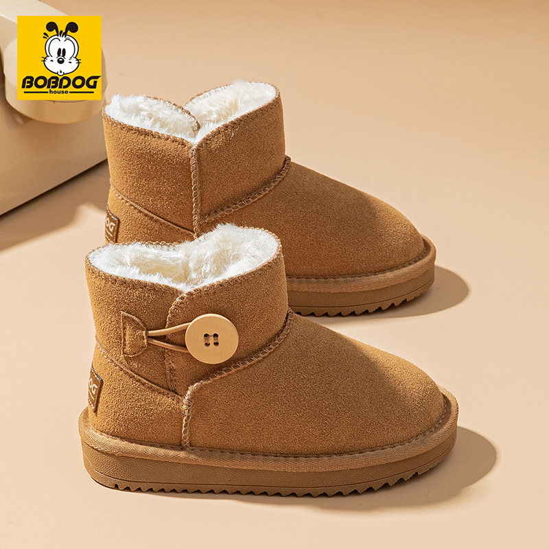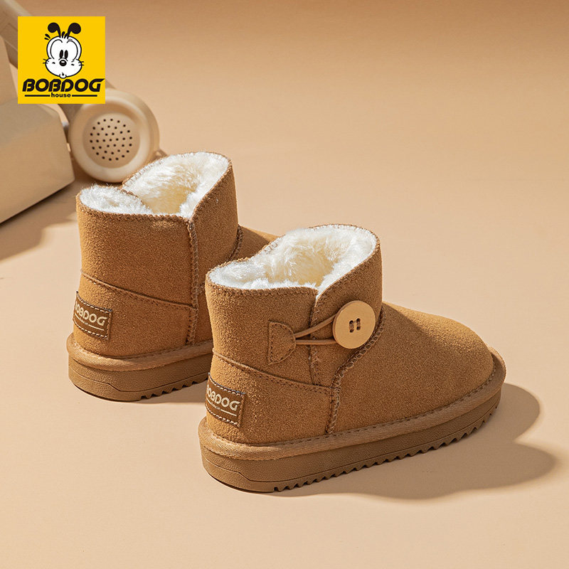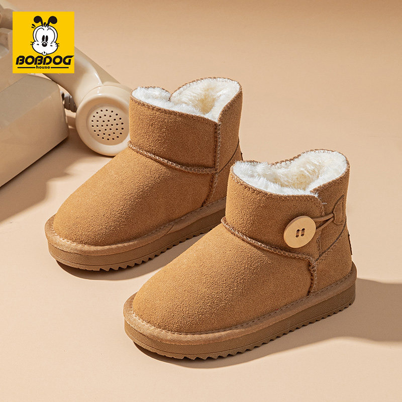 巴布豆儿童雪地靴2025新款女孩棉靴冬季男童短靴防水童鞋皮毛一体
