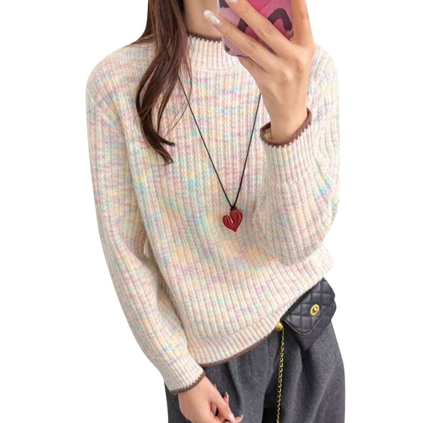 毛衣女款2025新款冬季内搭上衣女加绒加厚宽松套头打底衫女内搭冬