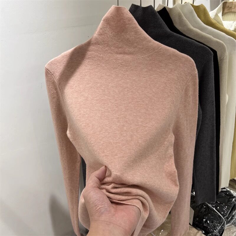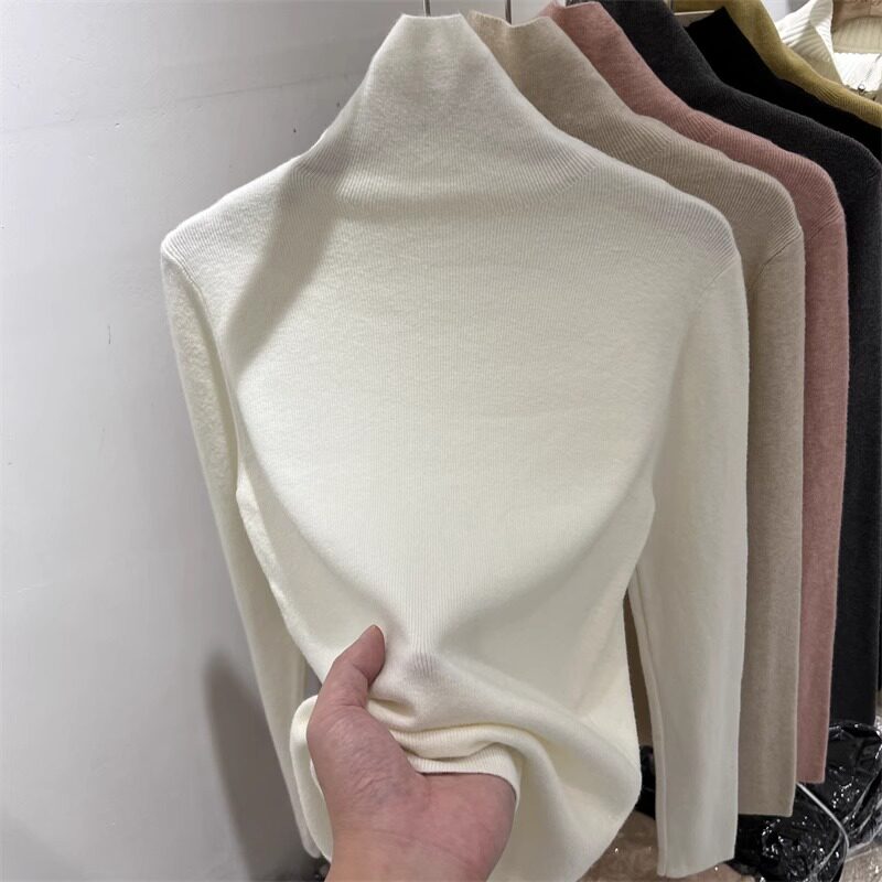 2025秋冬装新款高领软糯长袖针织衫毛衣女修身显瘦内搭打底衫上衣