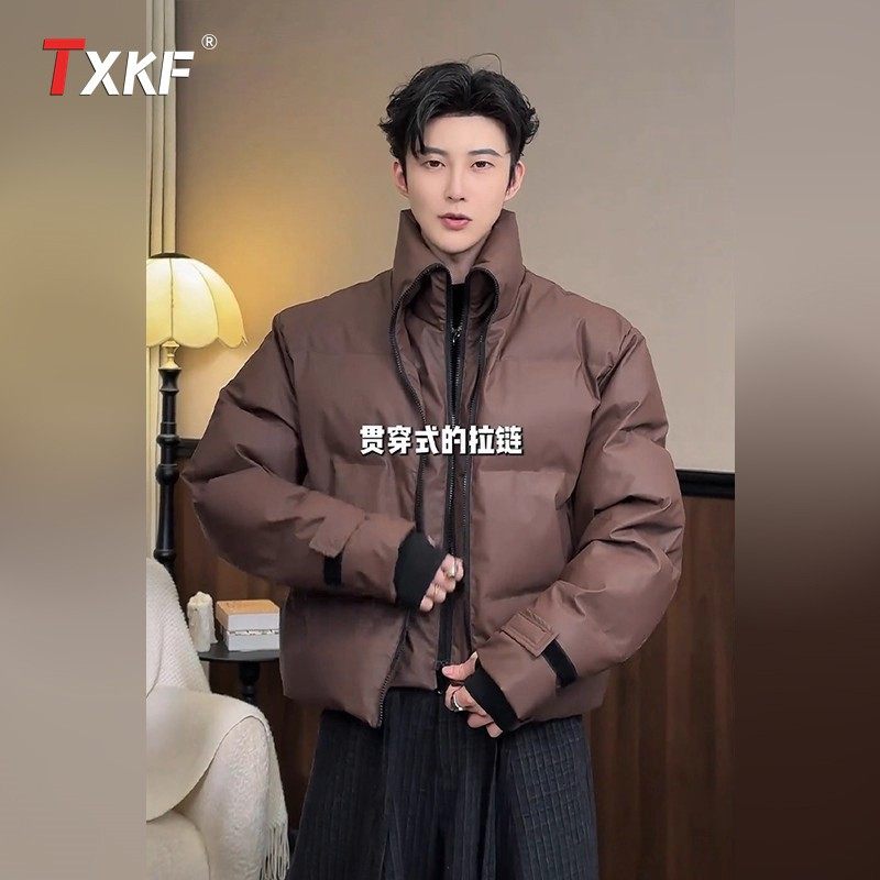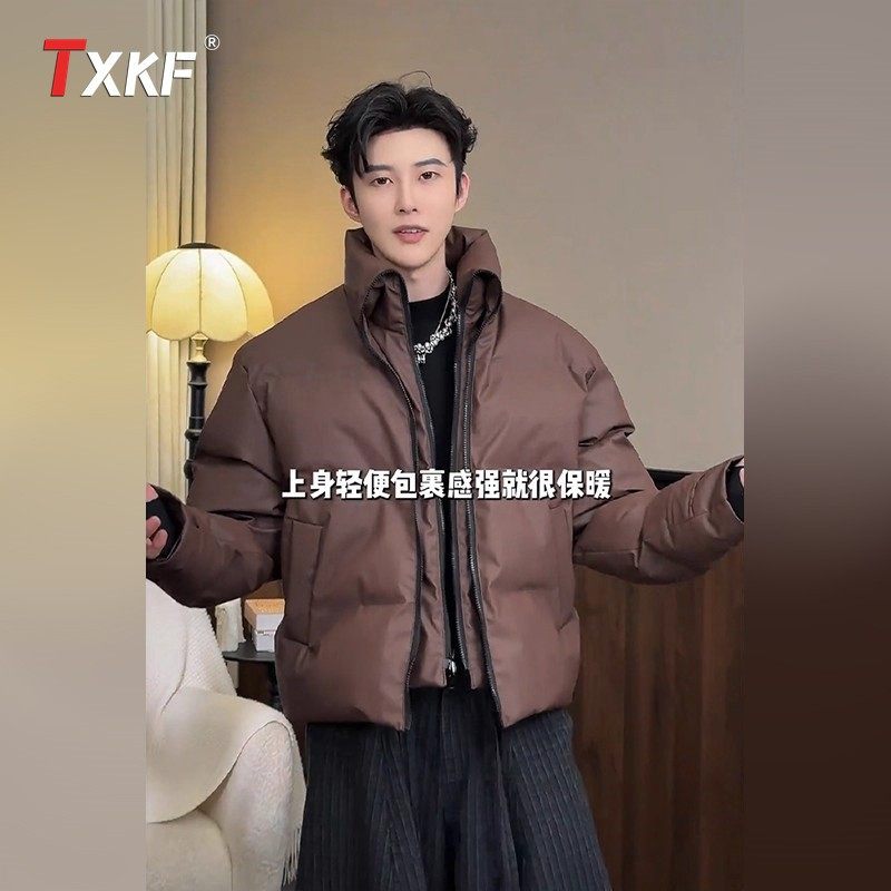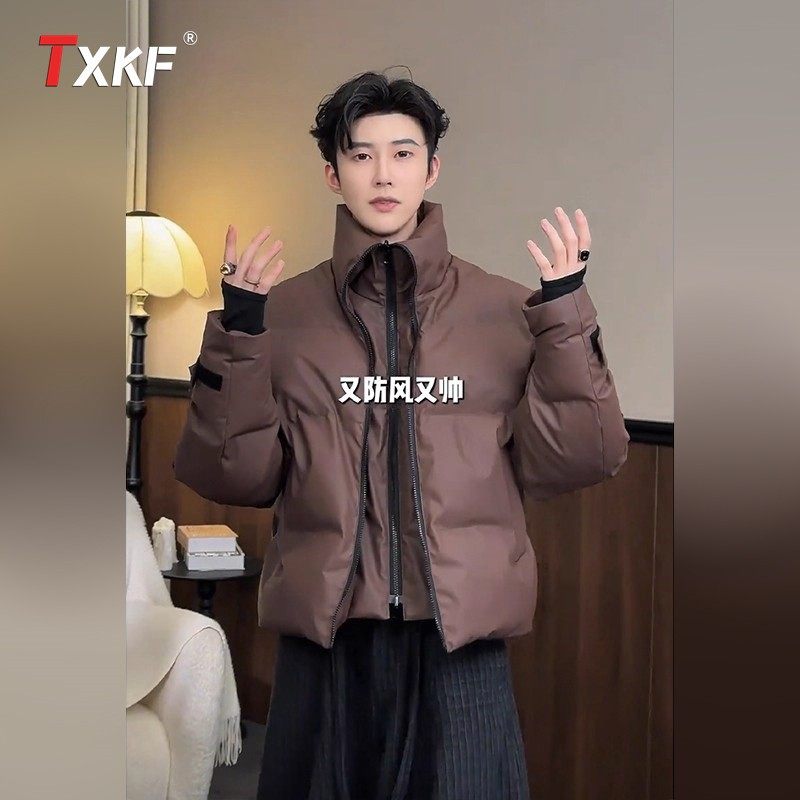 潮牌咖色立领棉服男外套男士2025新款冬季高级感加厚夹克男款冬装