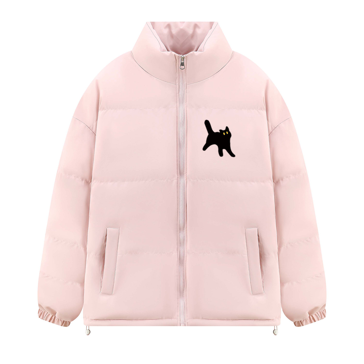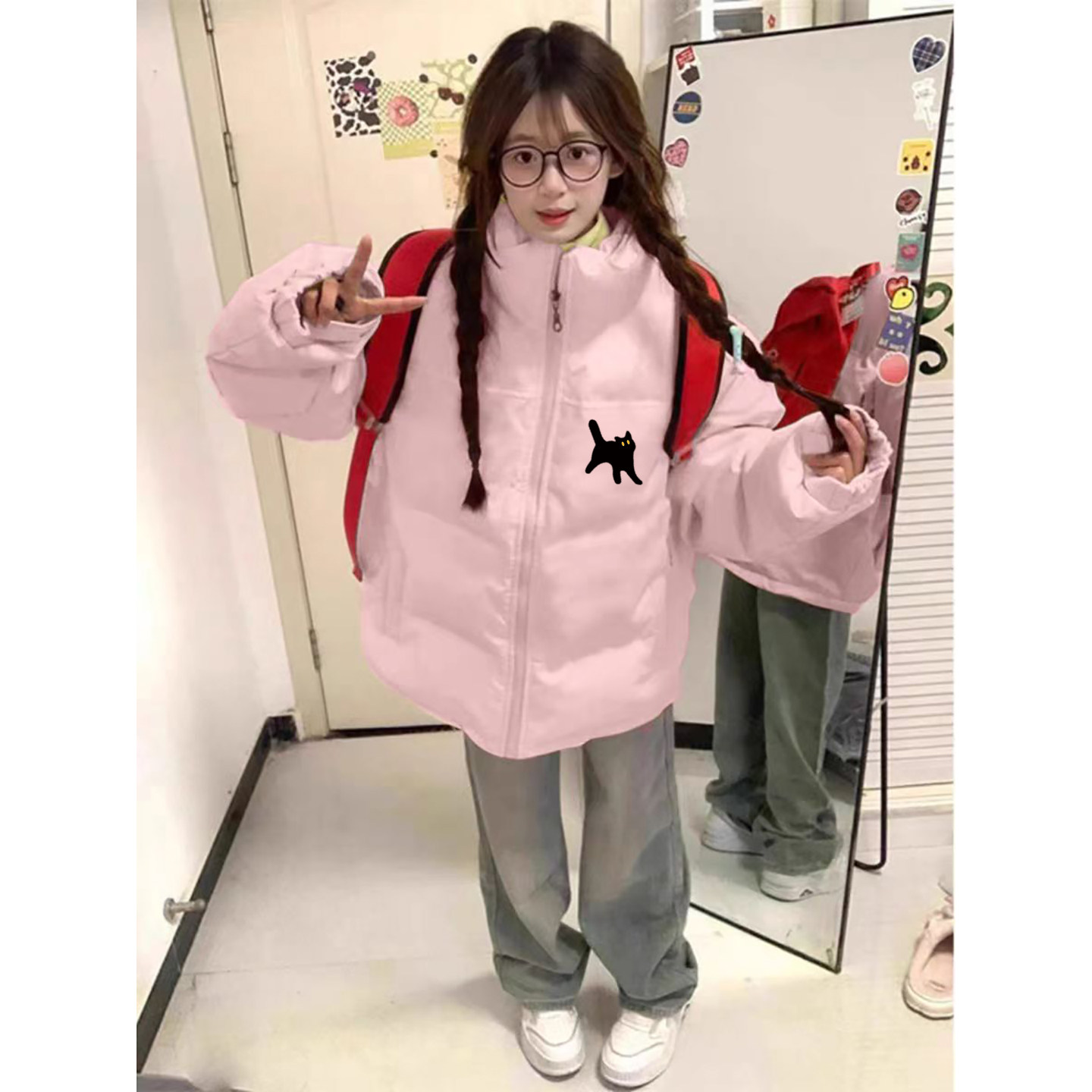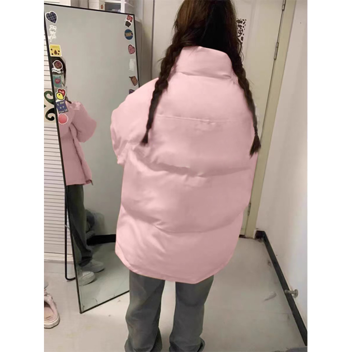 粉色可爱风立领羽绒棉服女大童秋冬季加厚宽松初中高中生棉衣外套
