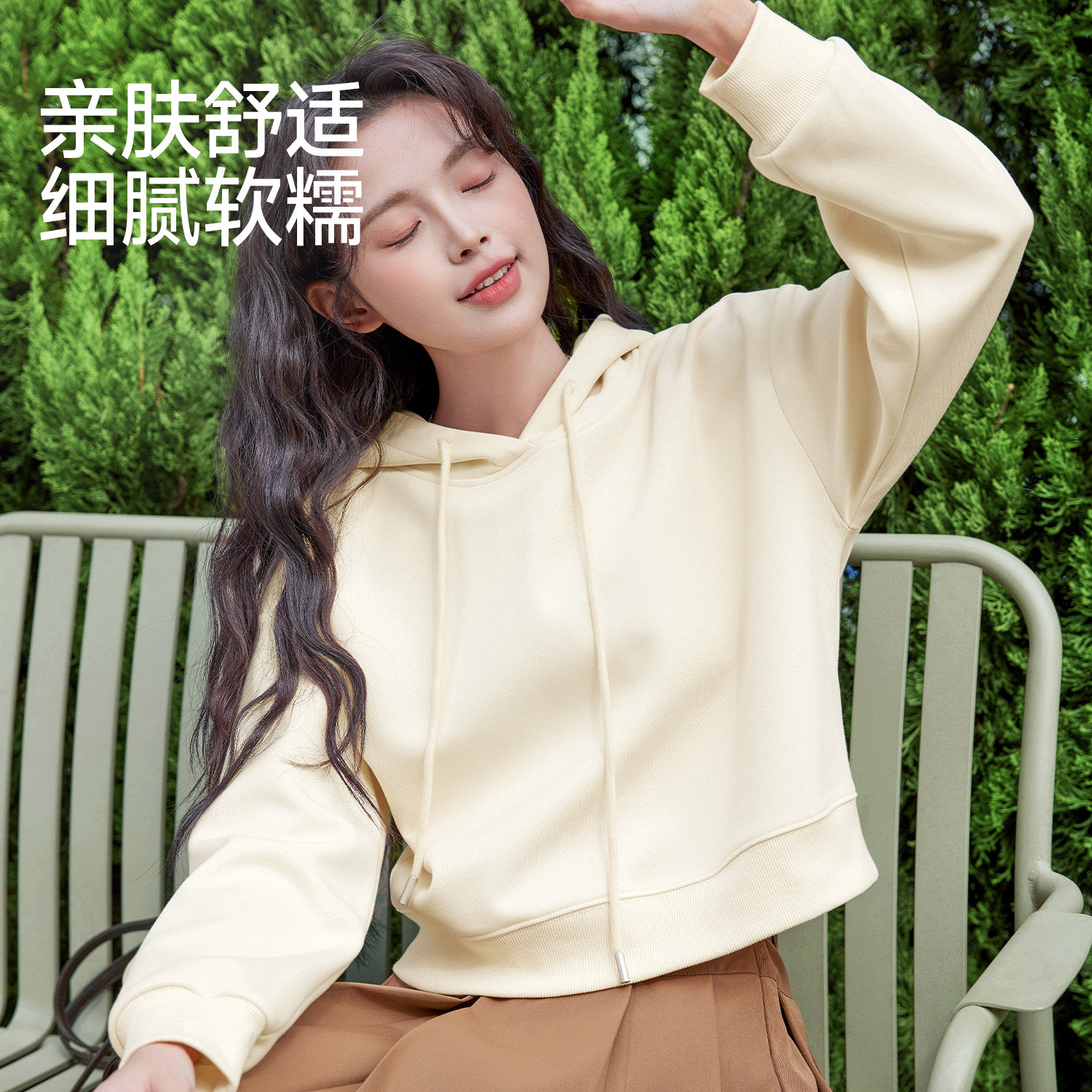 班尼路S&K系列红色短款连帽卫衣外套女款2026春季新款初中生上衣H
