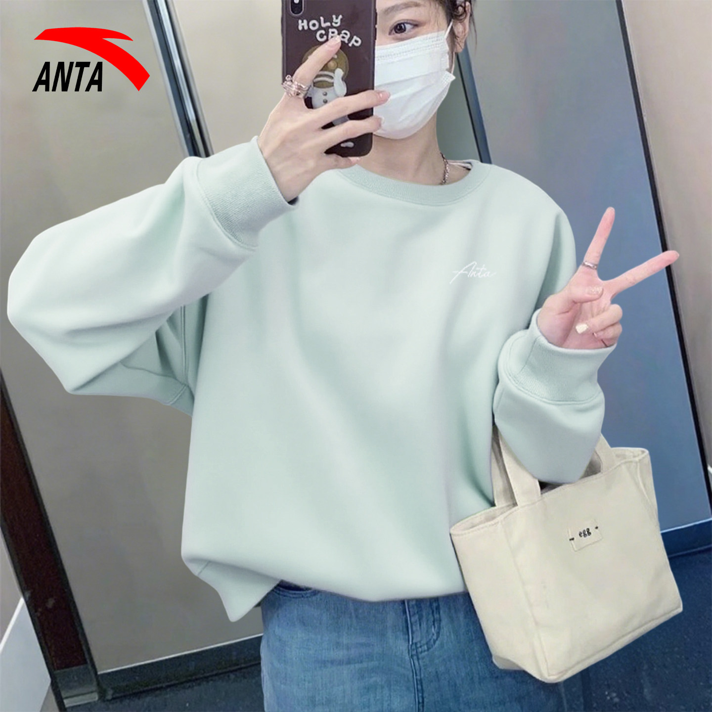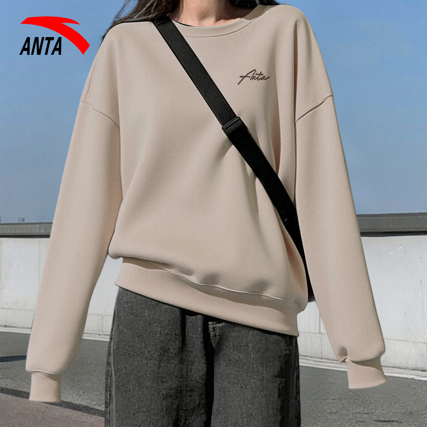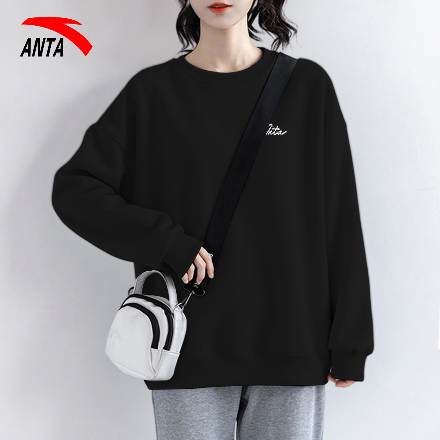 安踏卫衣女长袖2026新款春季紫色宽松显瘦运动休闲女装纯色套头衫