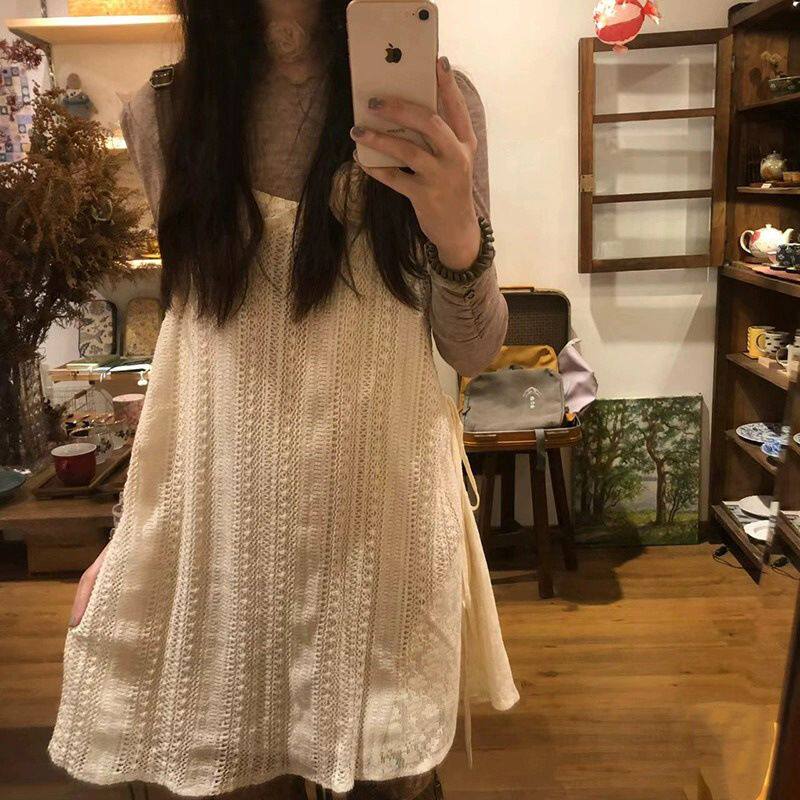 白色蕾丝吊带连衣裙女秋冬叠穿罩裙纱裙背心裙小个子字打底短裙