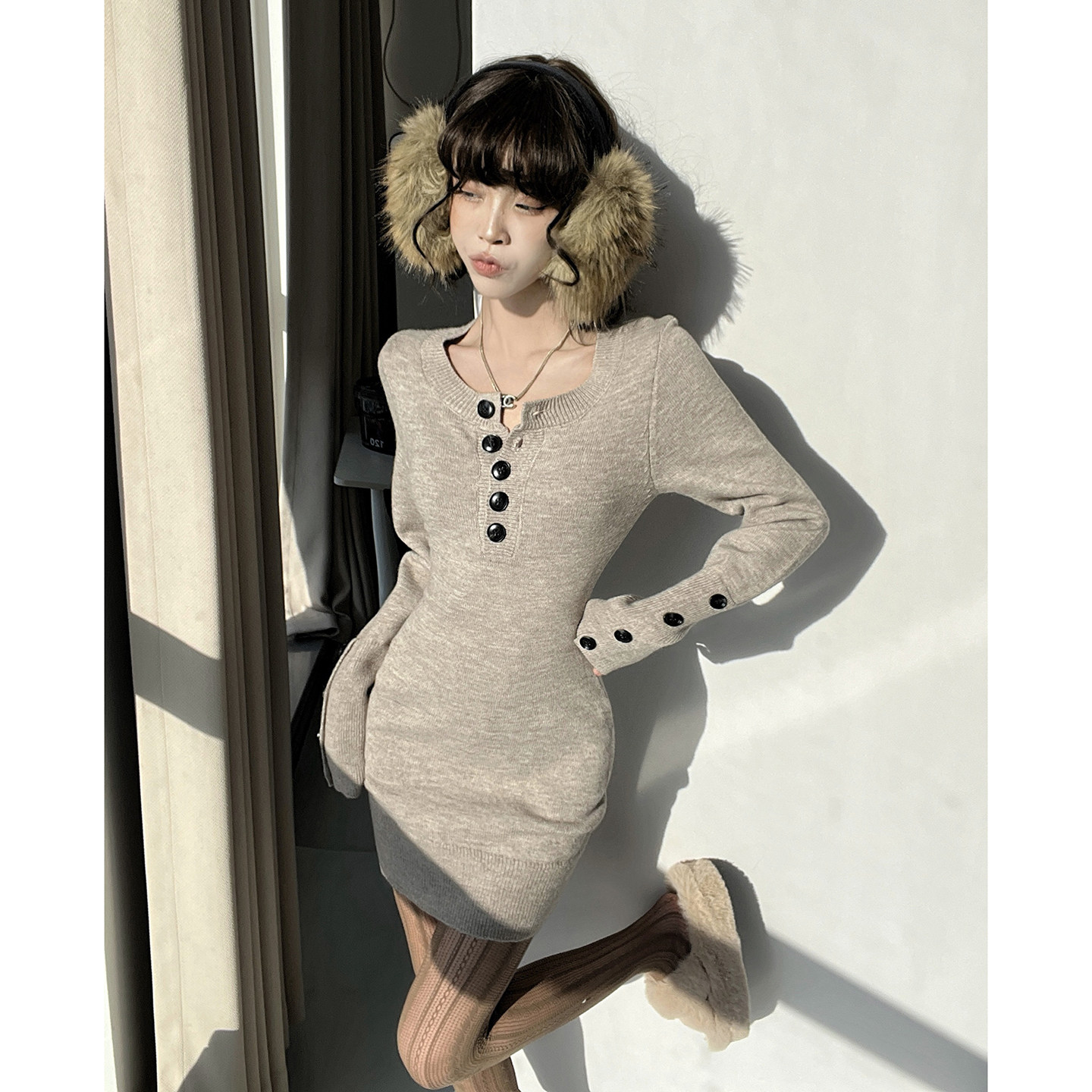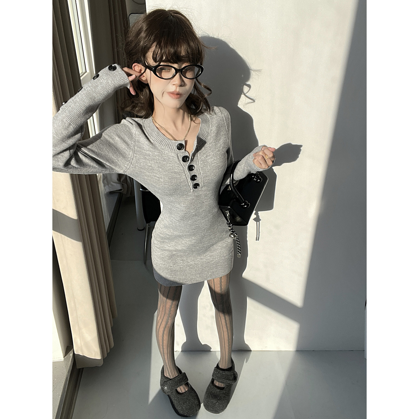 MianCun长袖连衣裙春季2026新款收腰显瘦纯欲辣妹针织包臀裙短裙