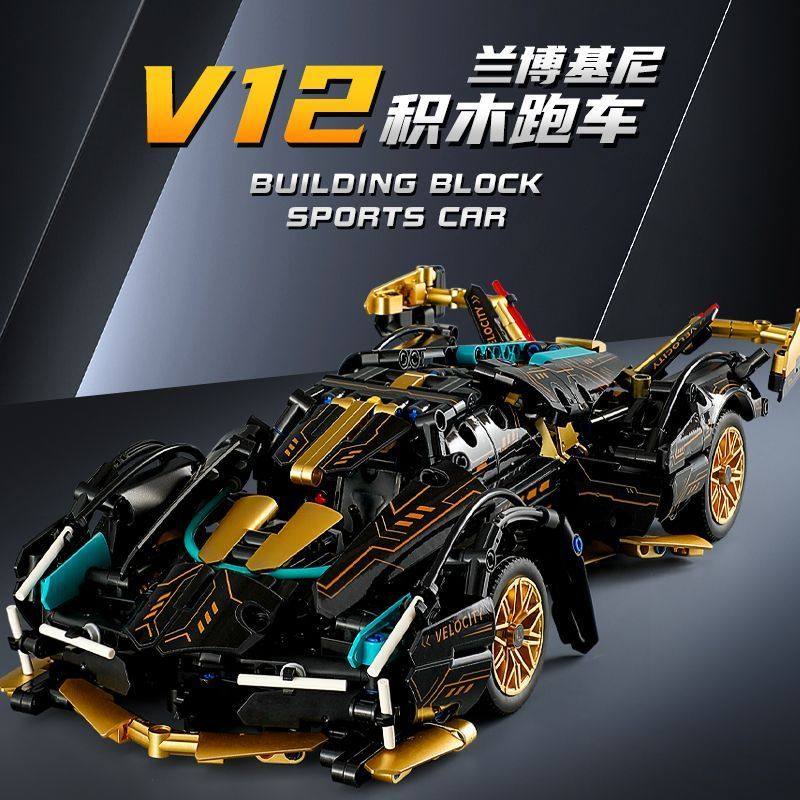 新款跑车黑武士兰博基尼遥控赛车高难度男孩拼装积木玩具汽车礼物