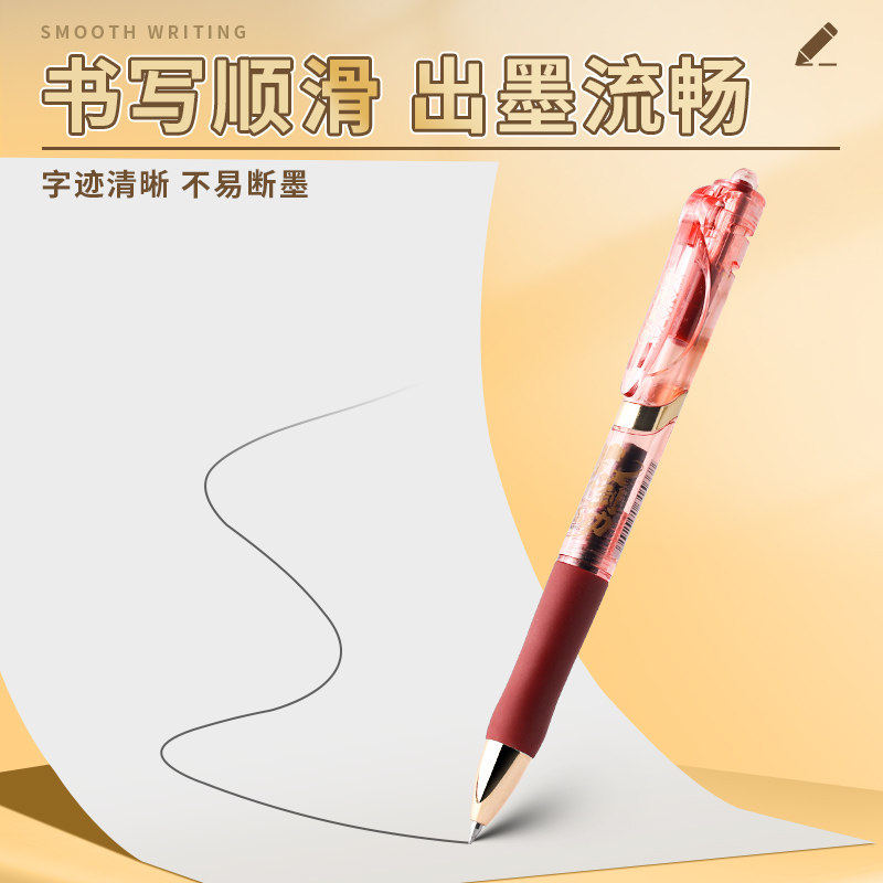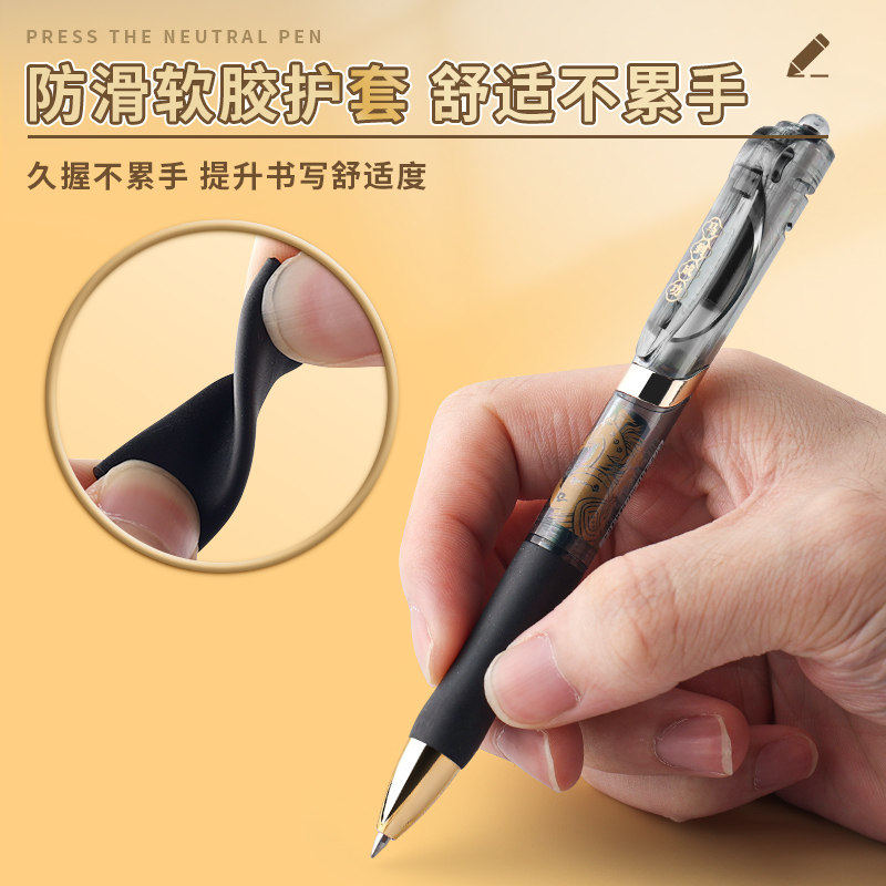 晨光马到成功马年限定k35按动水笔笔芯黑色中性笔办公签字笔子弹头笔高颜值学生用水性考试专用碳素黑圆珠笔