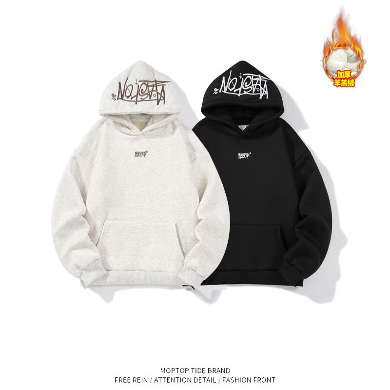 WHXS刺绣连帽卫衣男女款冬季高街ins潮牌宽松上衣帽衫套头街头