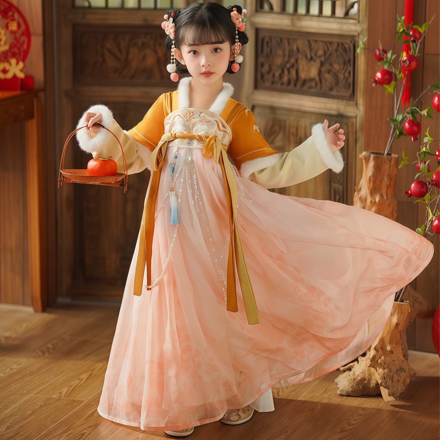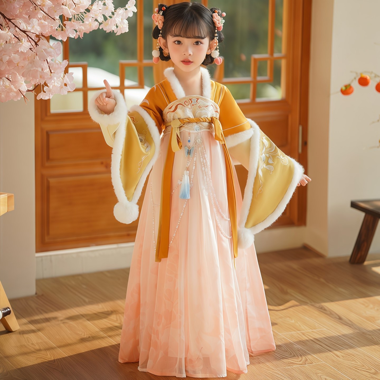 汉服女童冬装新款拜年服儿童国风唐装冬季古装过年古风加厚连衣裙