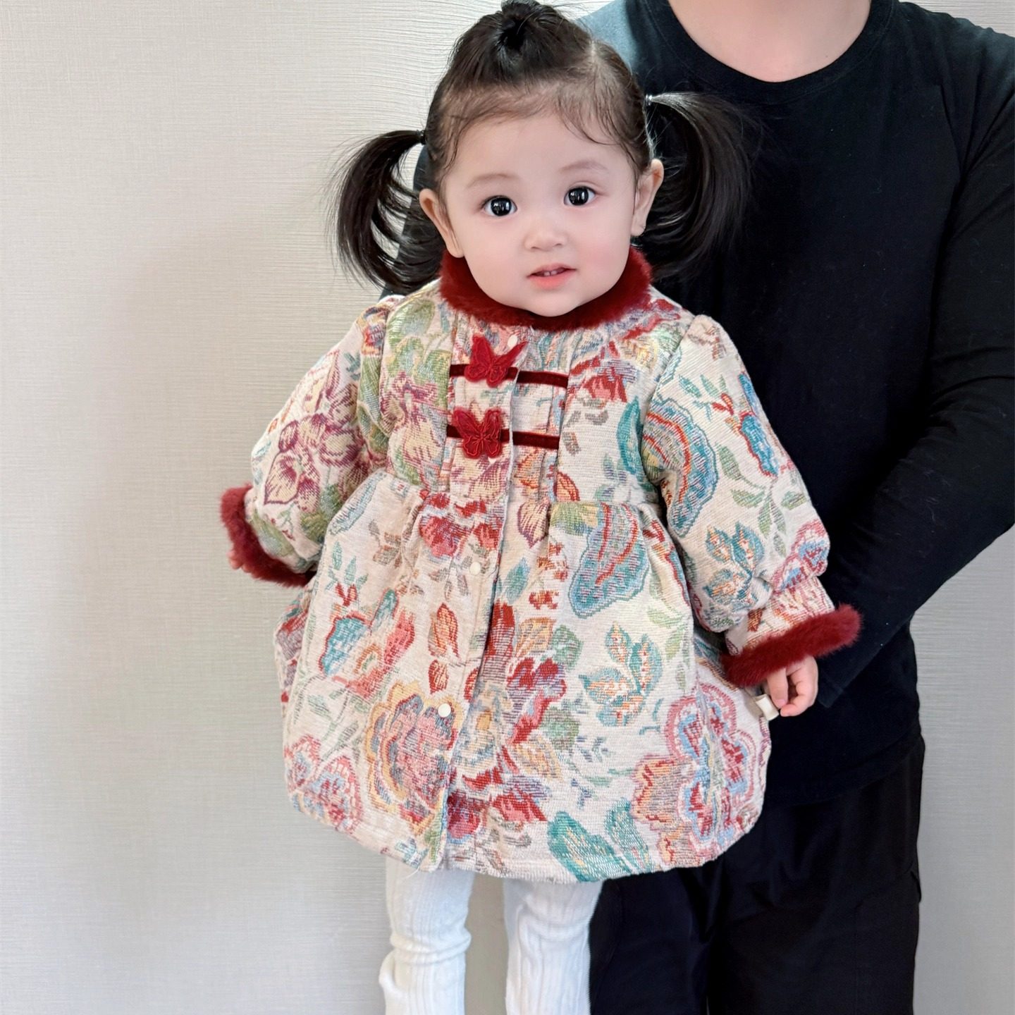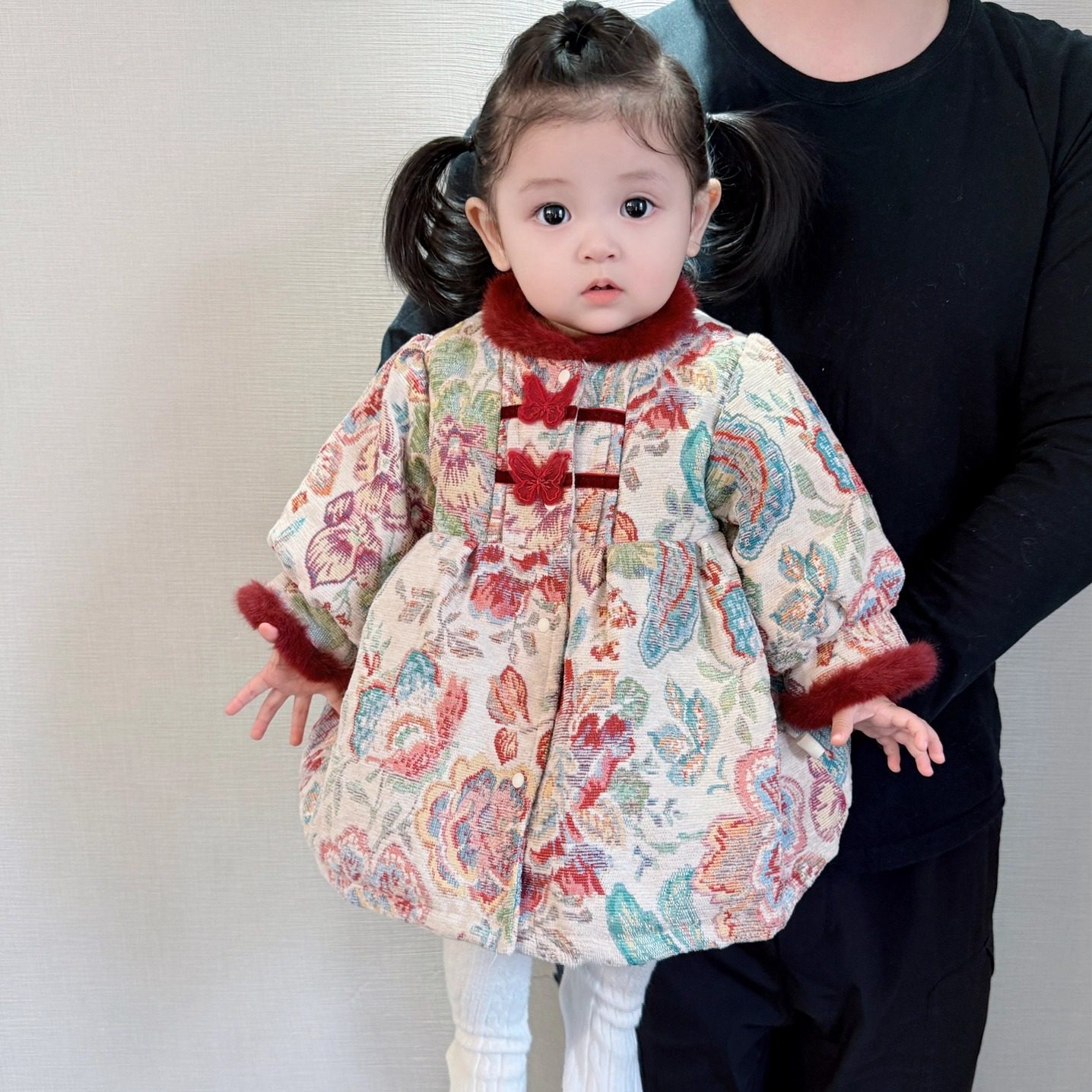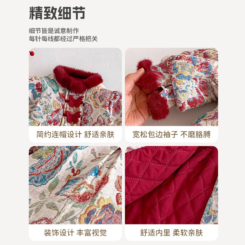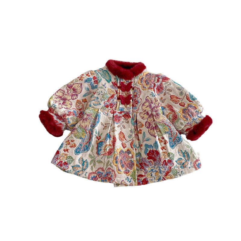 女宝过年衣服冬季婴儿连衣裙中国风复古提花刺绣夹棉加厚年服周岁