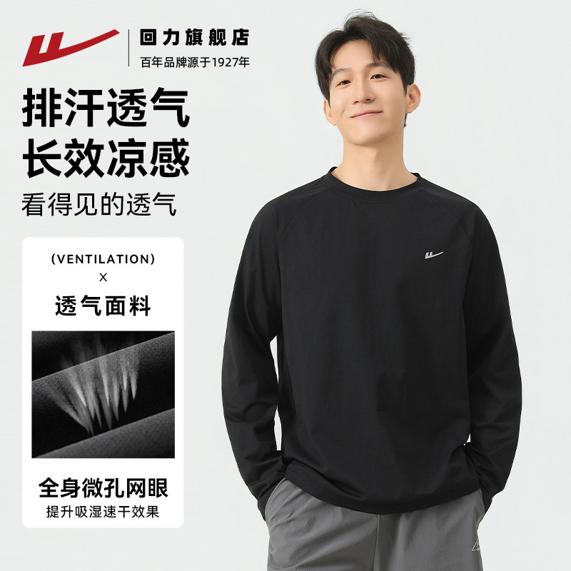 回力速干衣长袖T恤男士2026新款篮球跑步健身训练服秋冬运动上衣