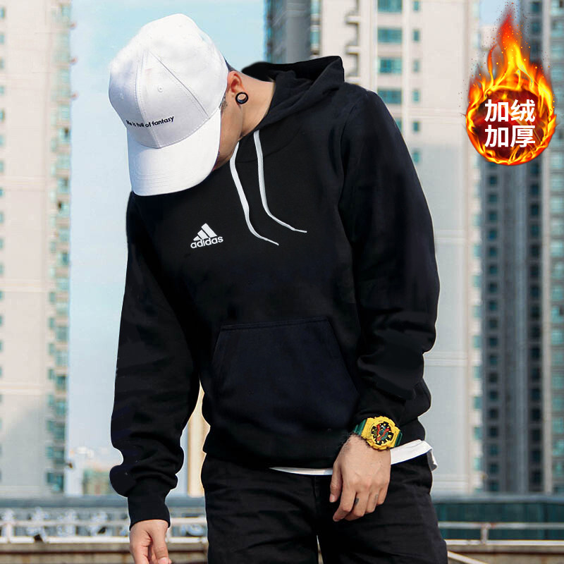 阿迪达斯男款卫衣官方旗舰正品冬季新款外套男士连帽加绒套头衫男