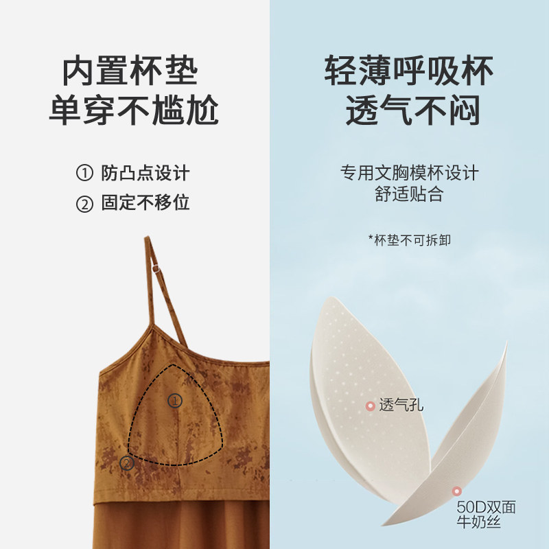 浪莎睡裙女士夏季莫代尔吊带长款连衣裙2026新款夏天带胸垫家居服