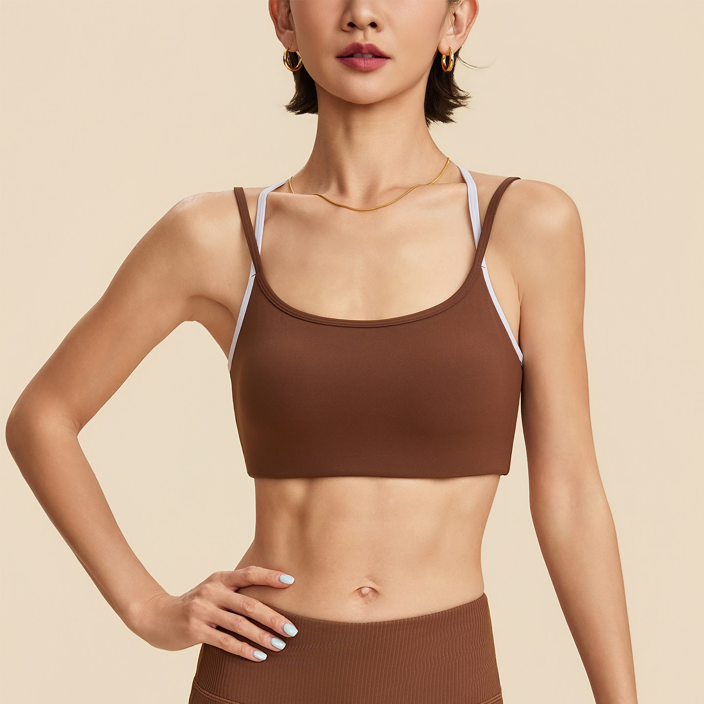 annerun撞色美背内衣女可外穿固定杯运动文胸聚拢吊带背心瑜伽服