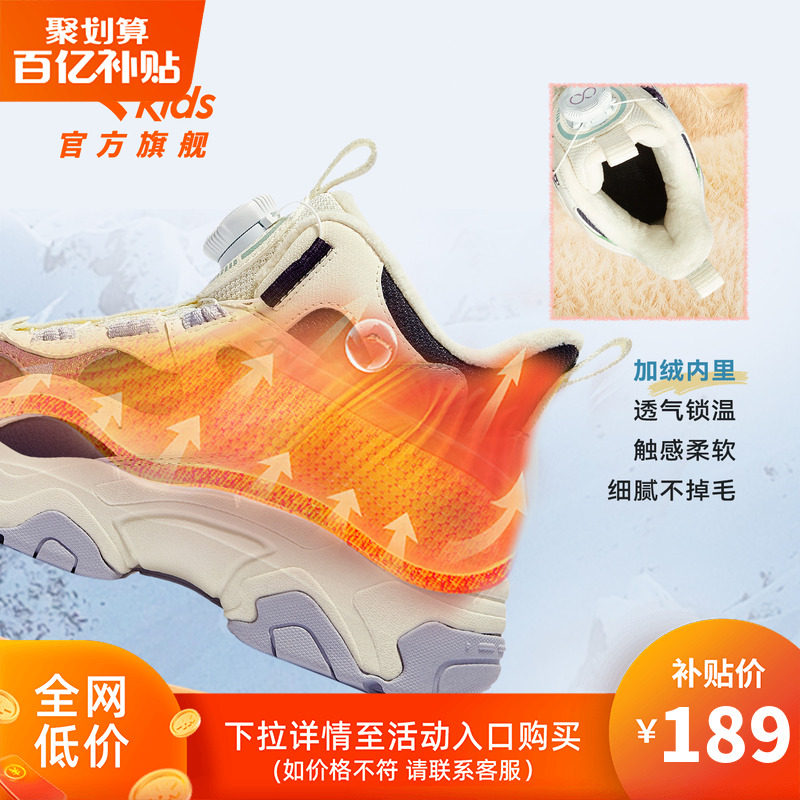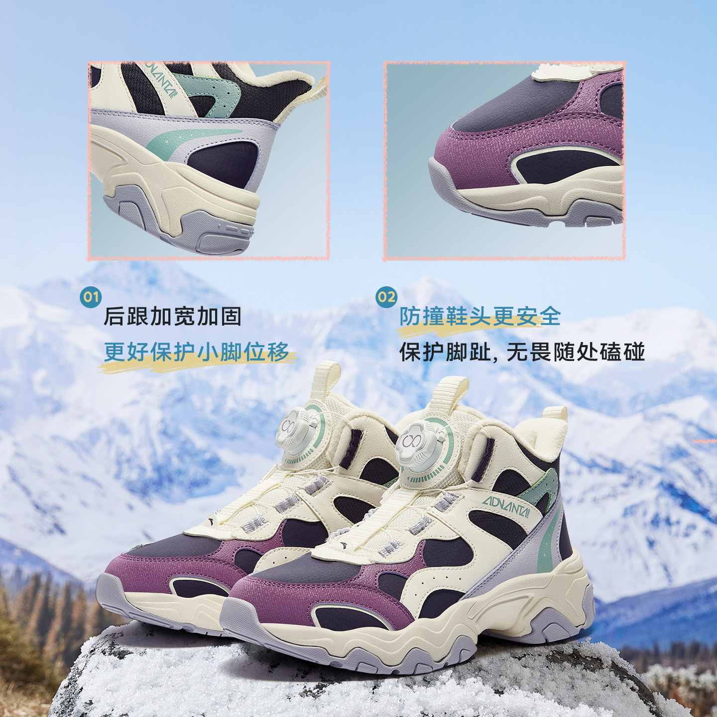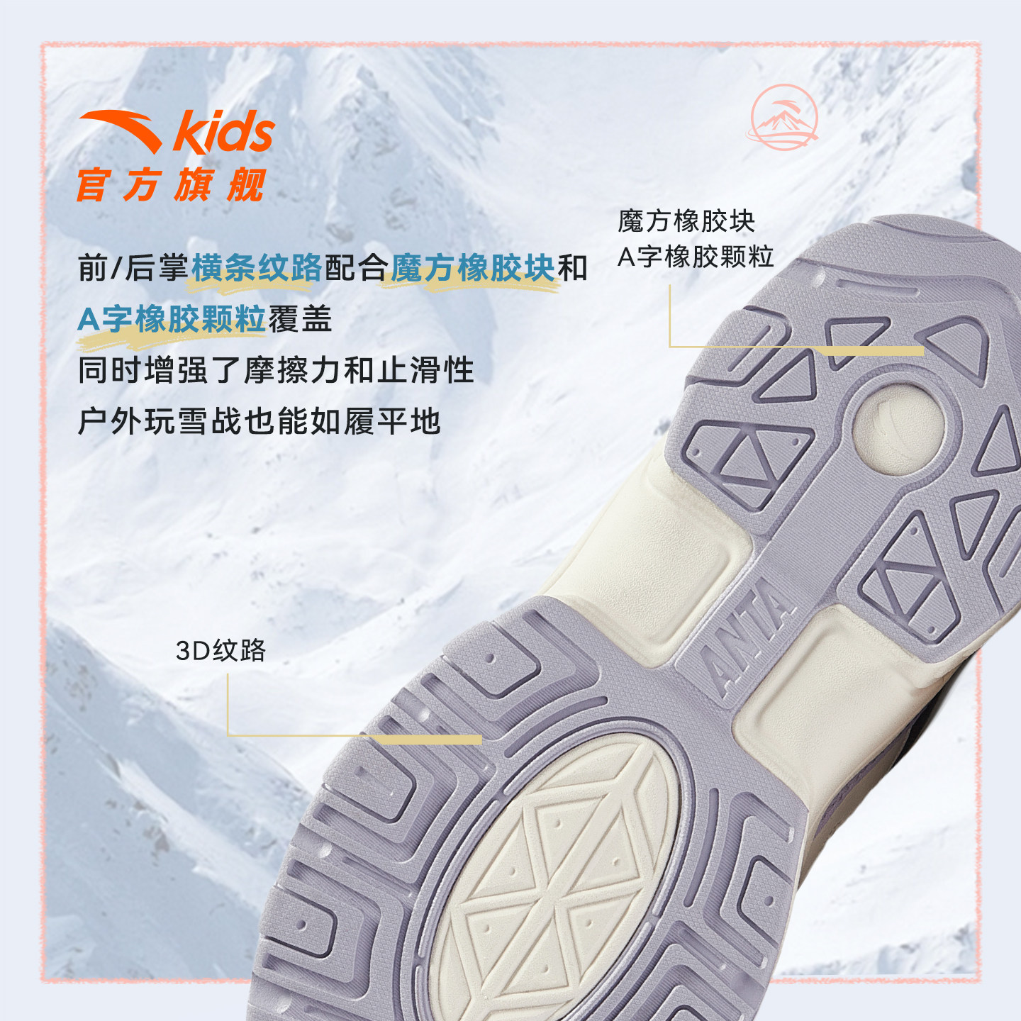 安踏儿童鞋二棉鞋女童2025冬季新款旋钮扣加绒雪地靴运动户外棉鞋