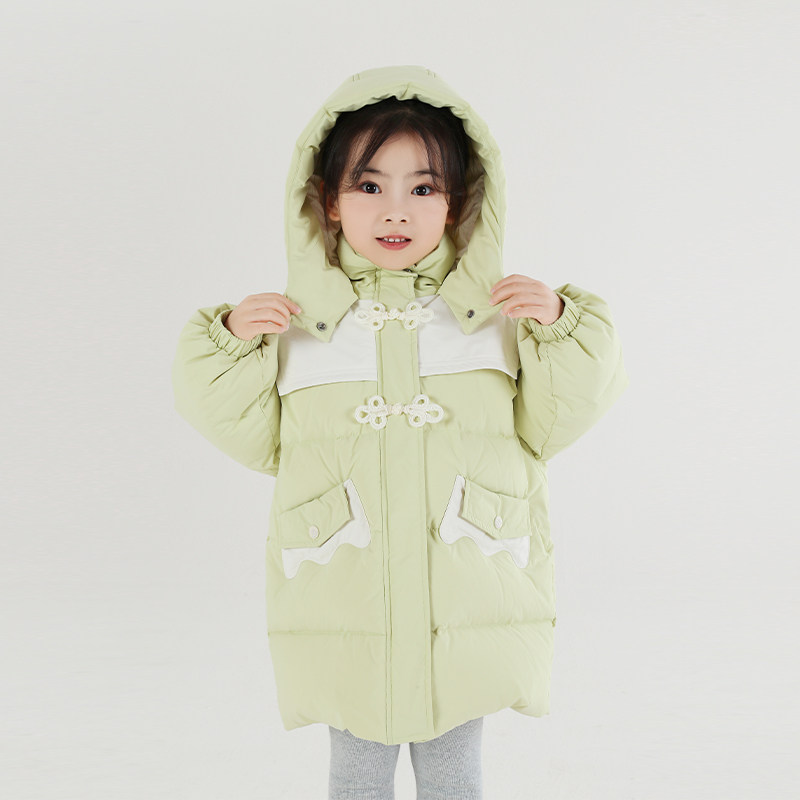 女童新中式中长款羽绒服冬季2026新款儿童洋气女宝宝加厚外套冬装