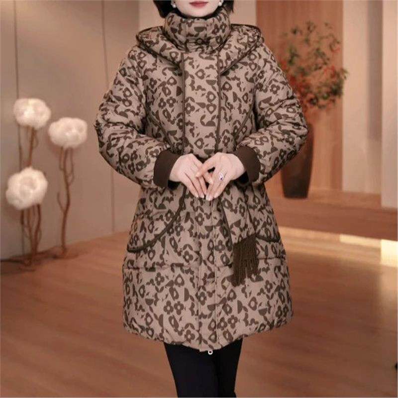 2026新款今年流行爆款中长款冬女装外套拼接连帽时尚洋气宽松保暖