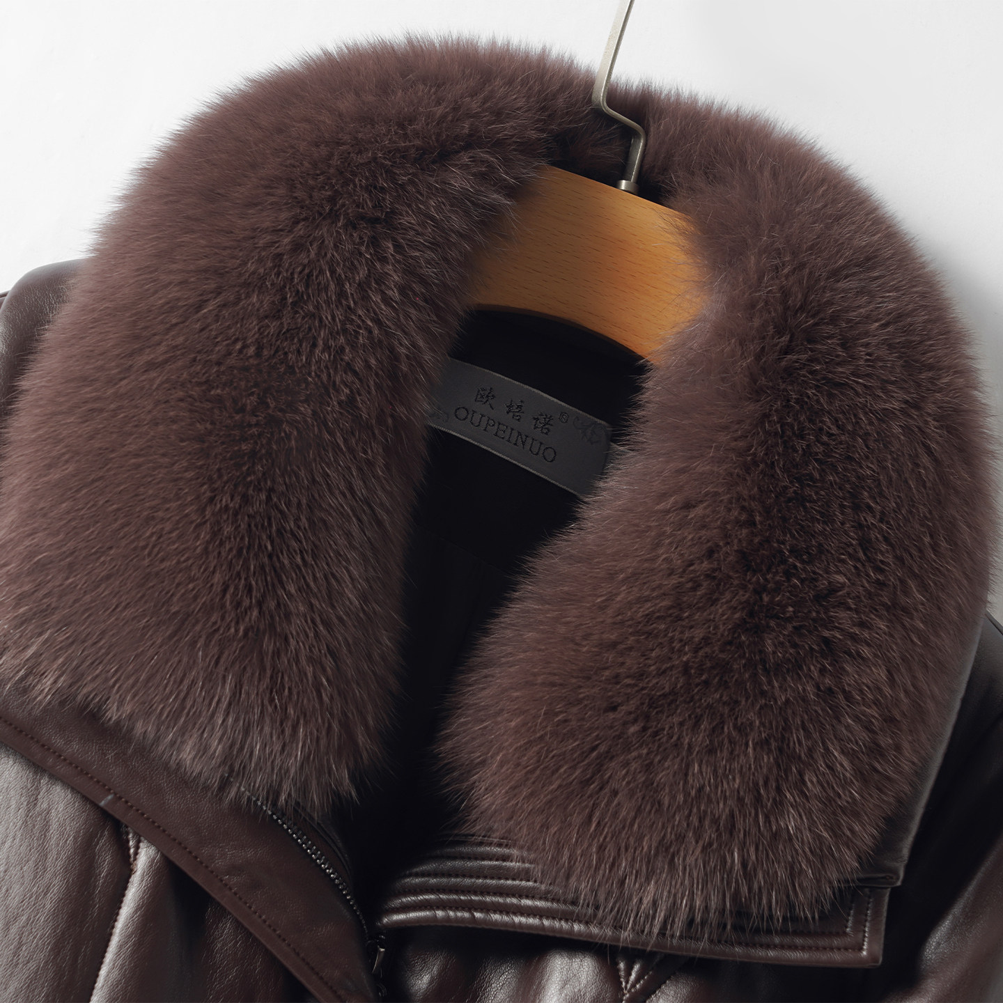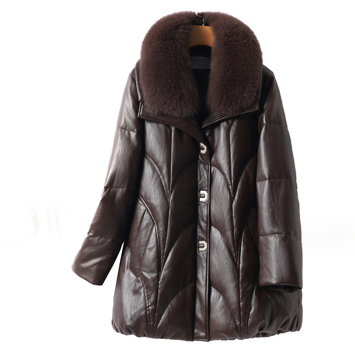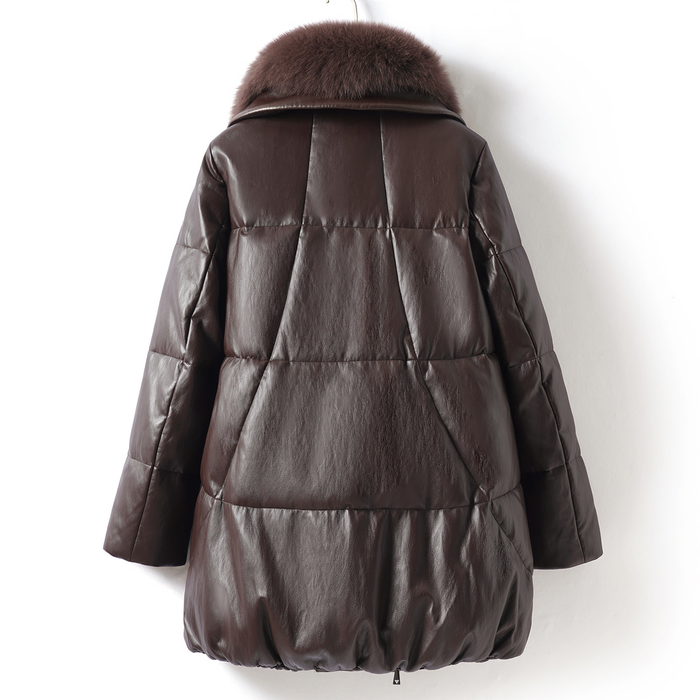 加厚皮衣女中长款狐狸毛领韩版宽松真皮外套冬90白鸭绒绵羊皮羽绒