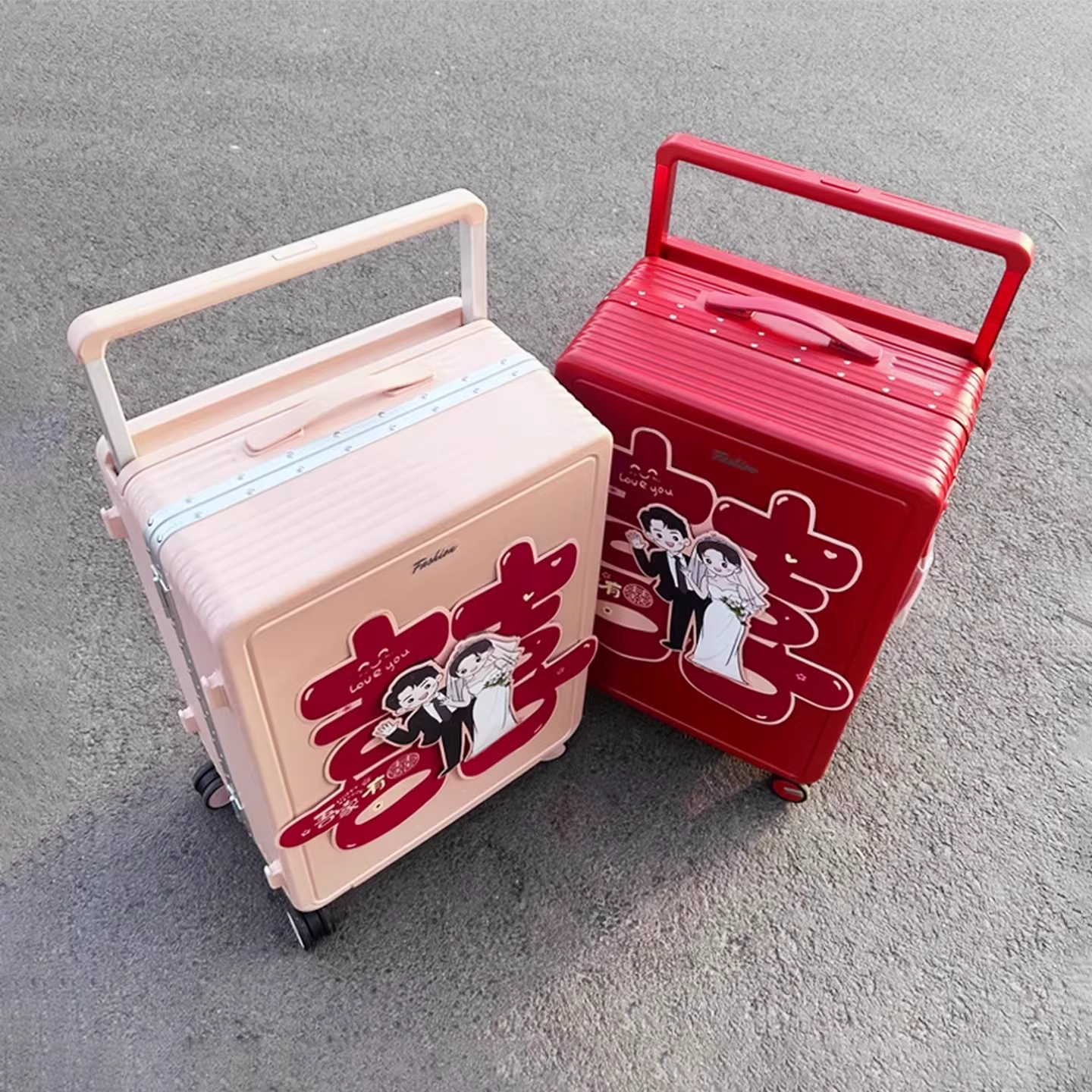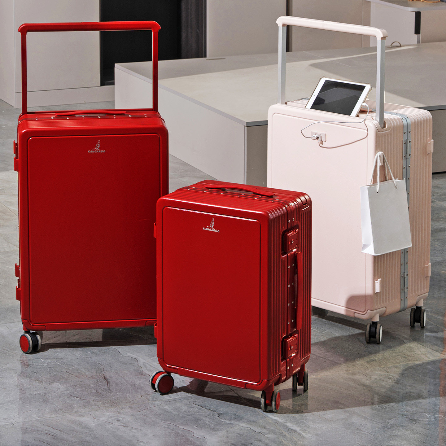 袋鼠行李箱宽拉杆女生高颜值20寸可登机密码旅行皮箱子24结婚铝框