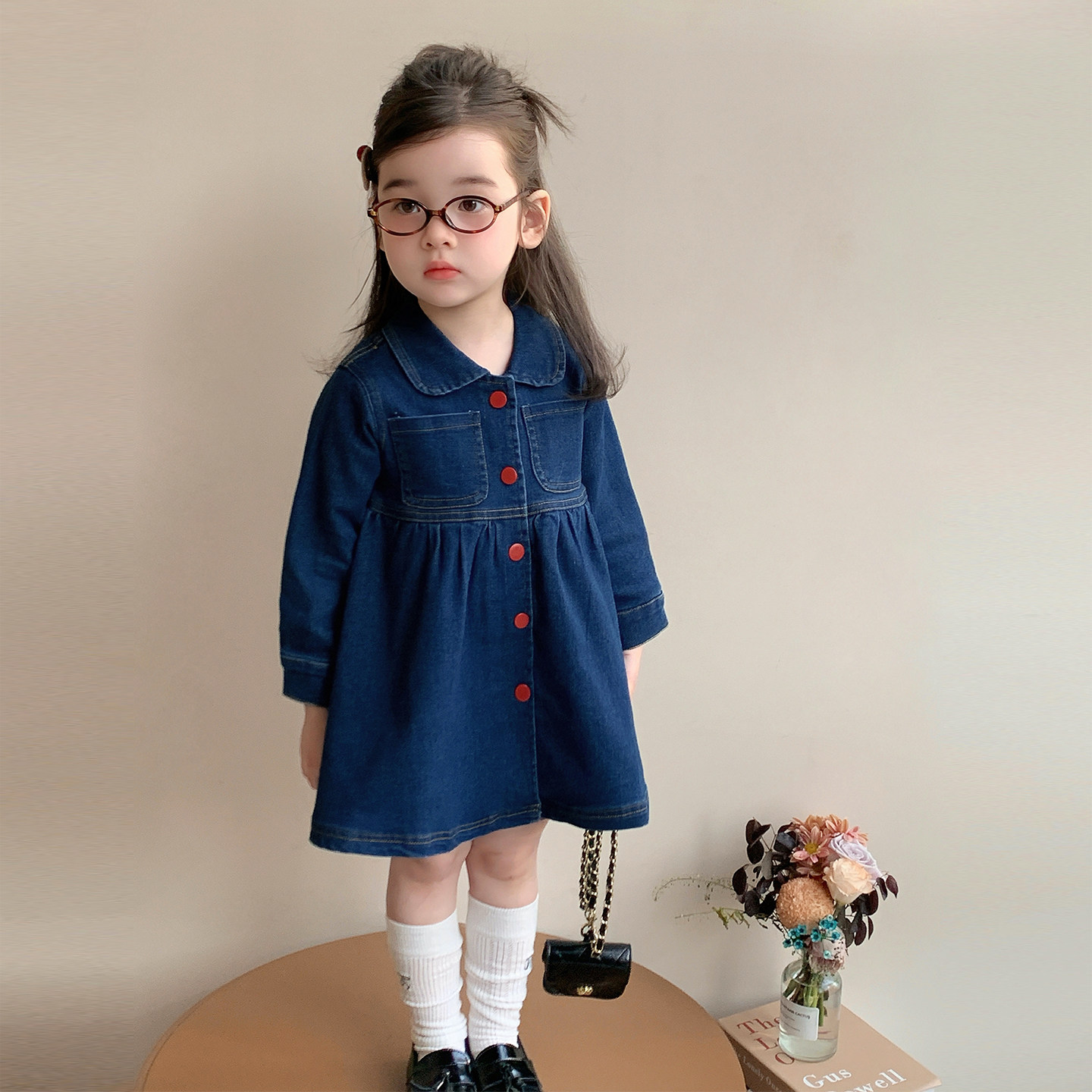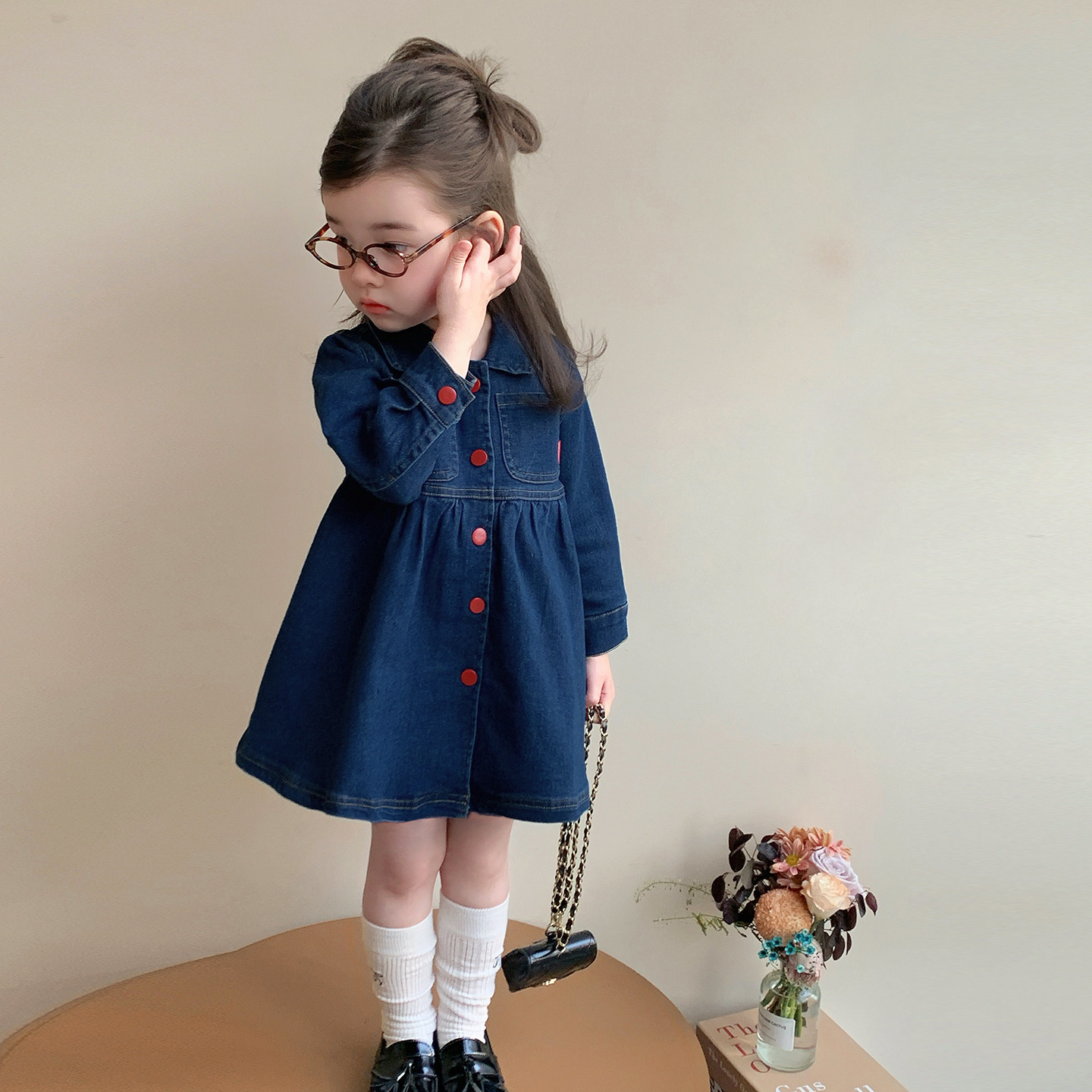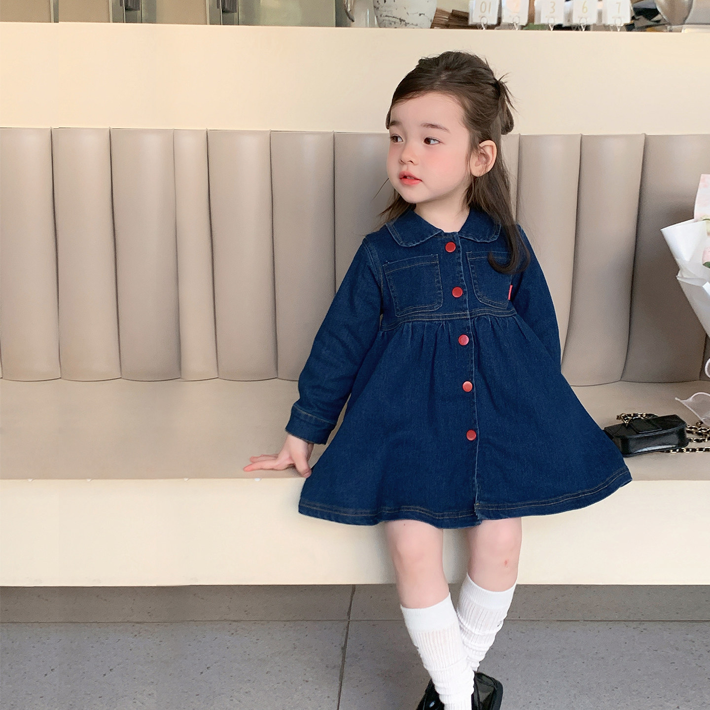 女童春秋款弹力牛仔连衣裙宝宝秋季儿童长袖裙子韩版薄款公主裙潮