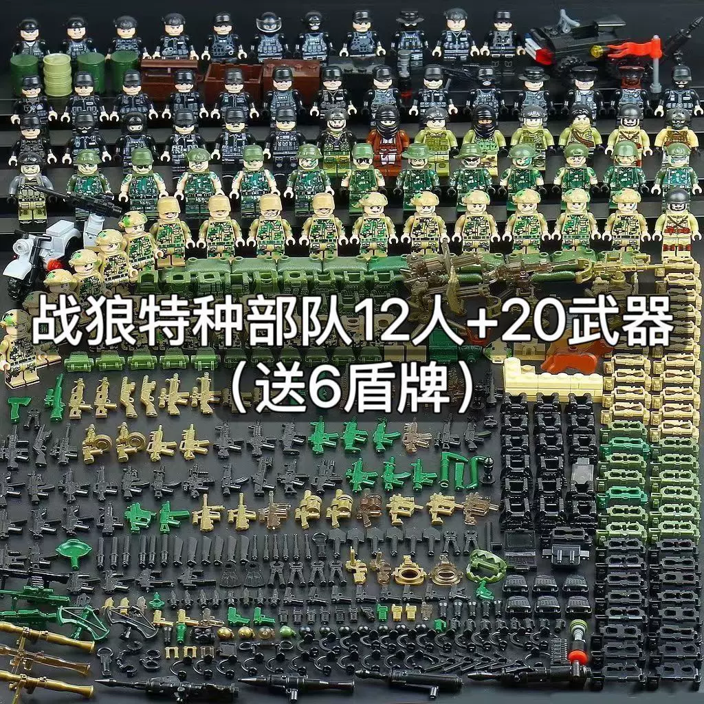 兼容乐高军事特种兵人仔积木特警士兵武器益智儿童拼装男孩玩具