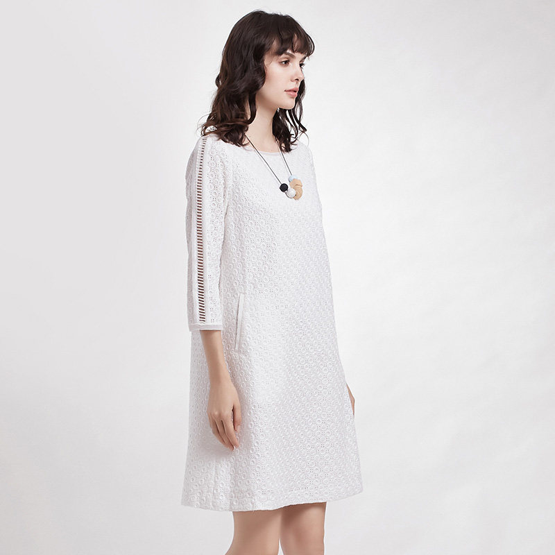 【清仓】名师路极简主义白色连衣裙春装女长袖镂空宽松套头一步裙