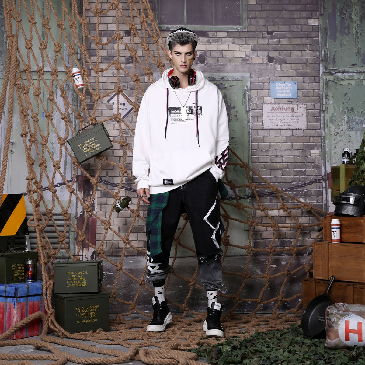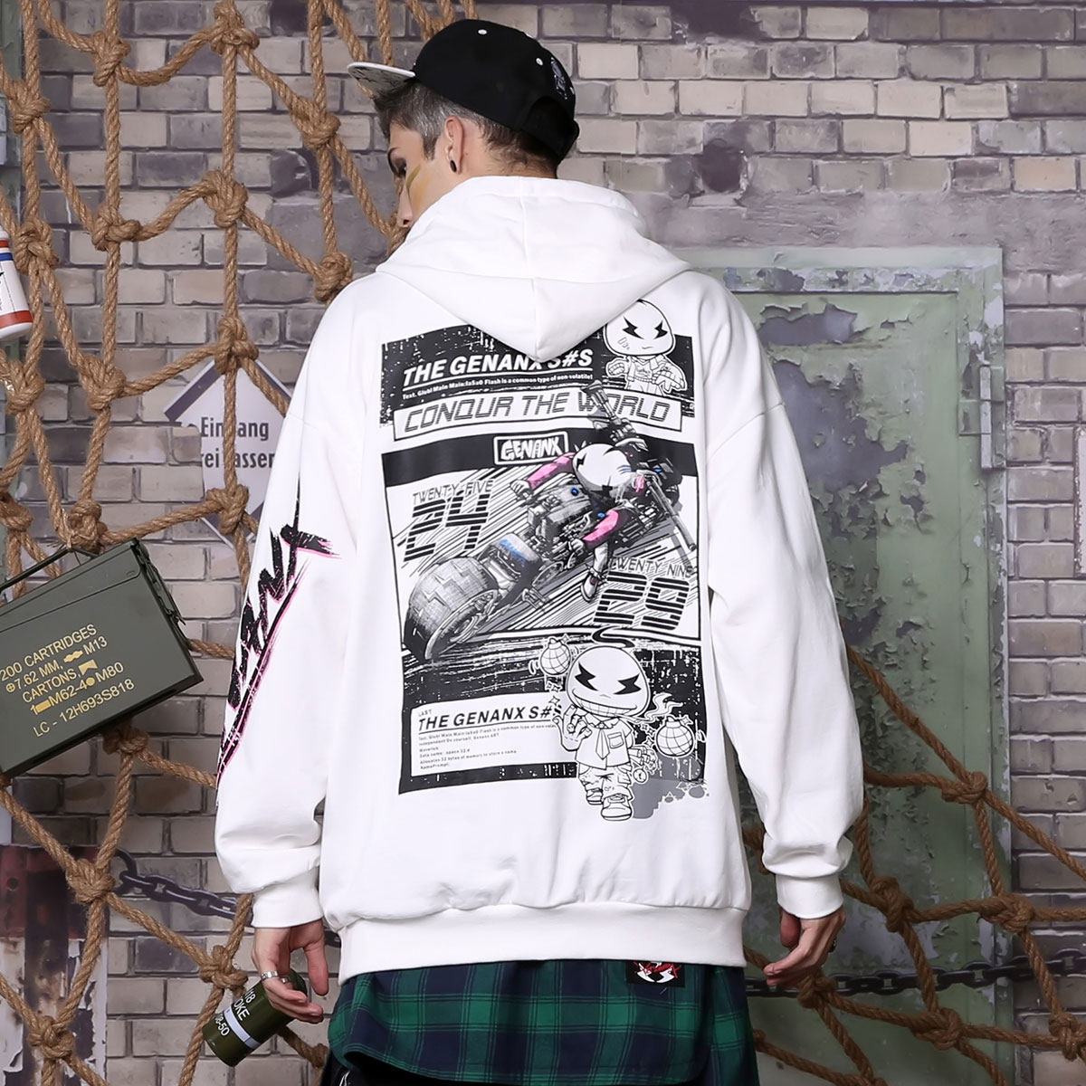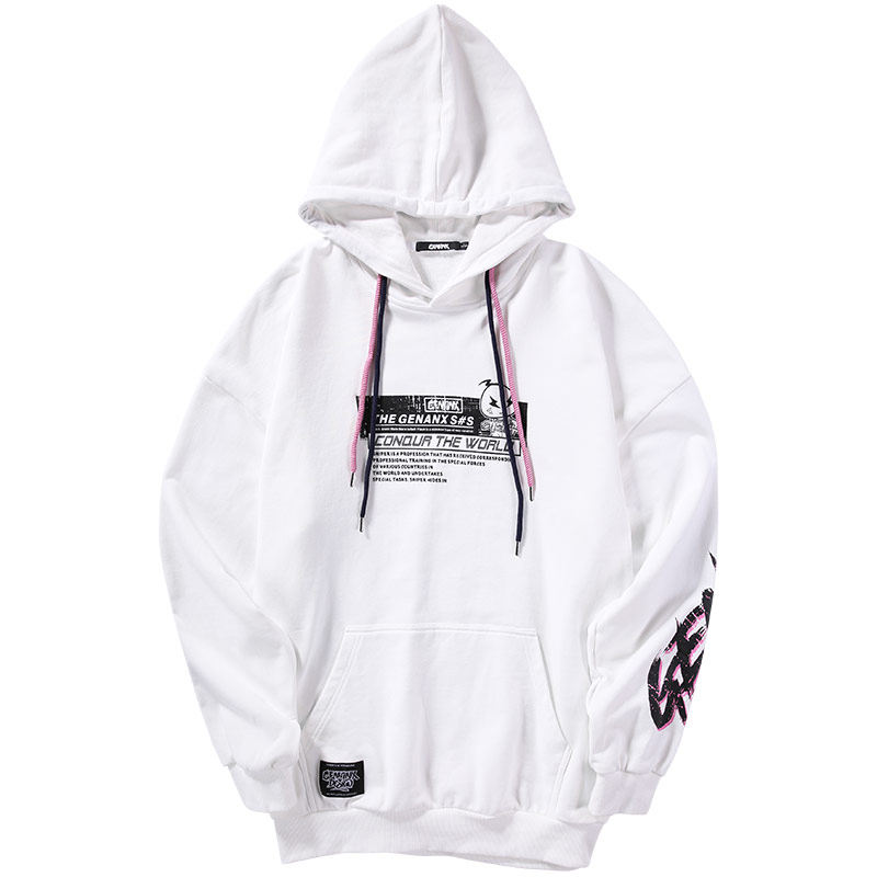 GENANX闪电潮牌白色情侣连帽帽衫美式高街卫衣男女款春秋新款上衣