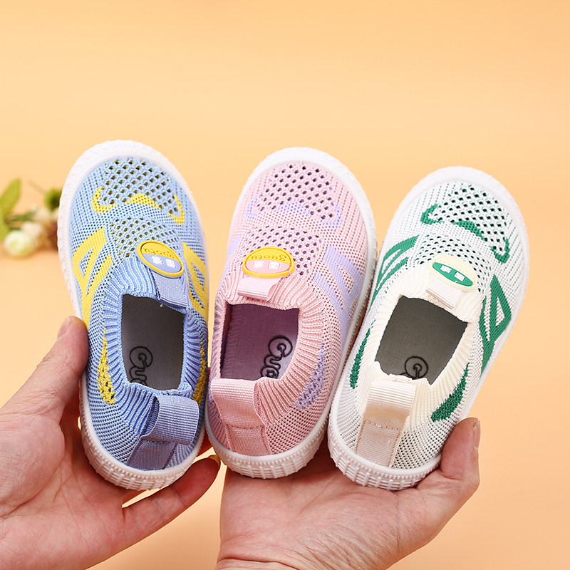 儿童运动鞋布鞋新款男童单鞋幼儿园室内春秋时尚透气女童飞织板鞋