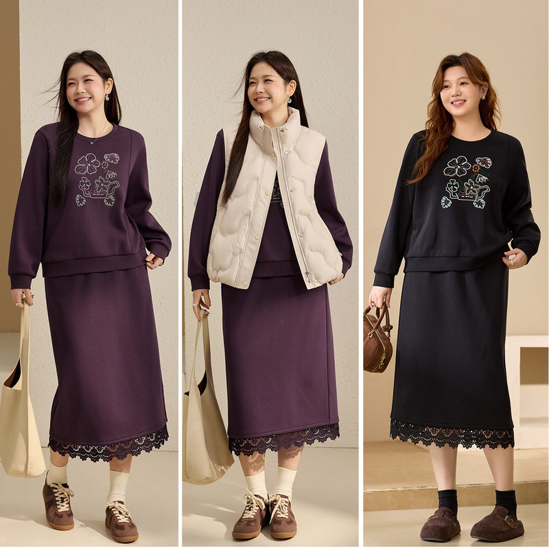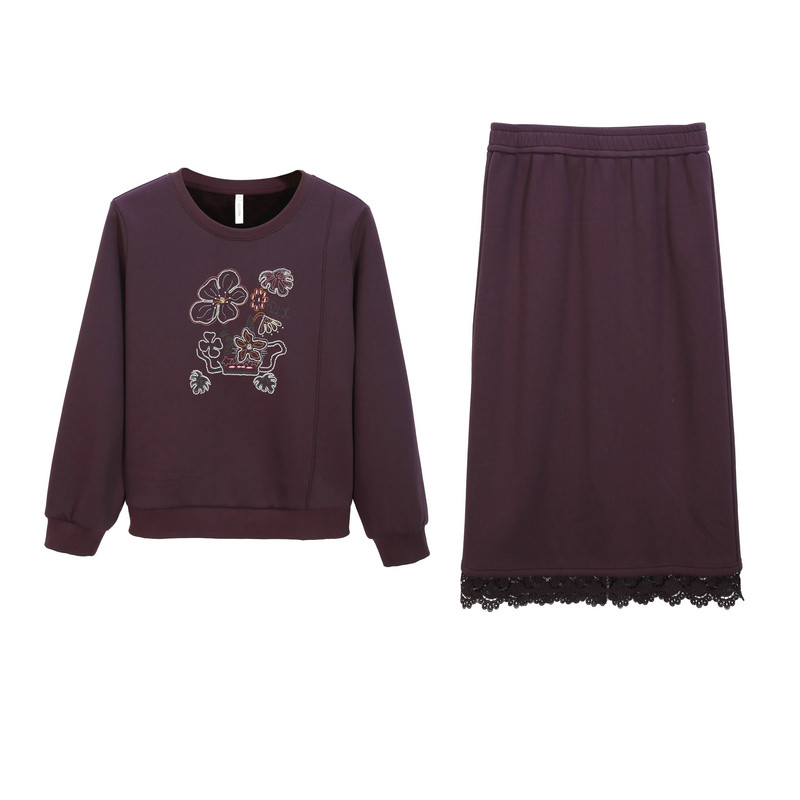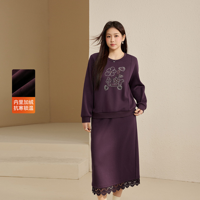 【保暖加绒卫衣套装】纤莉秀大码女装休闲舒适两件套胖mm冬装新款