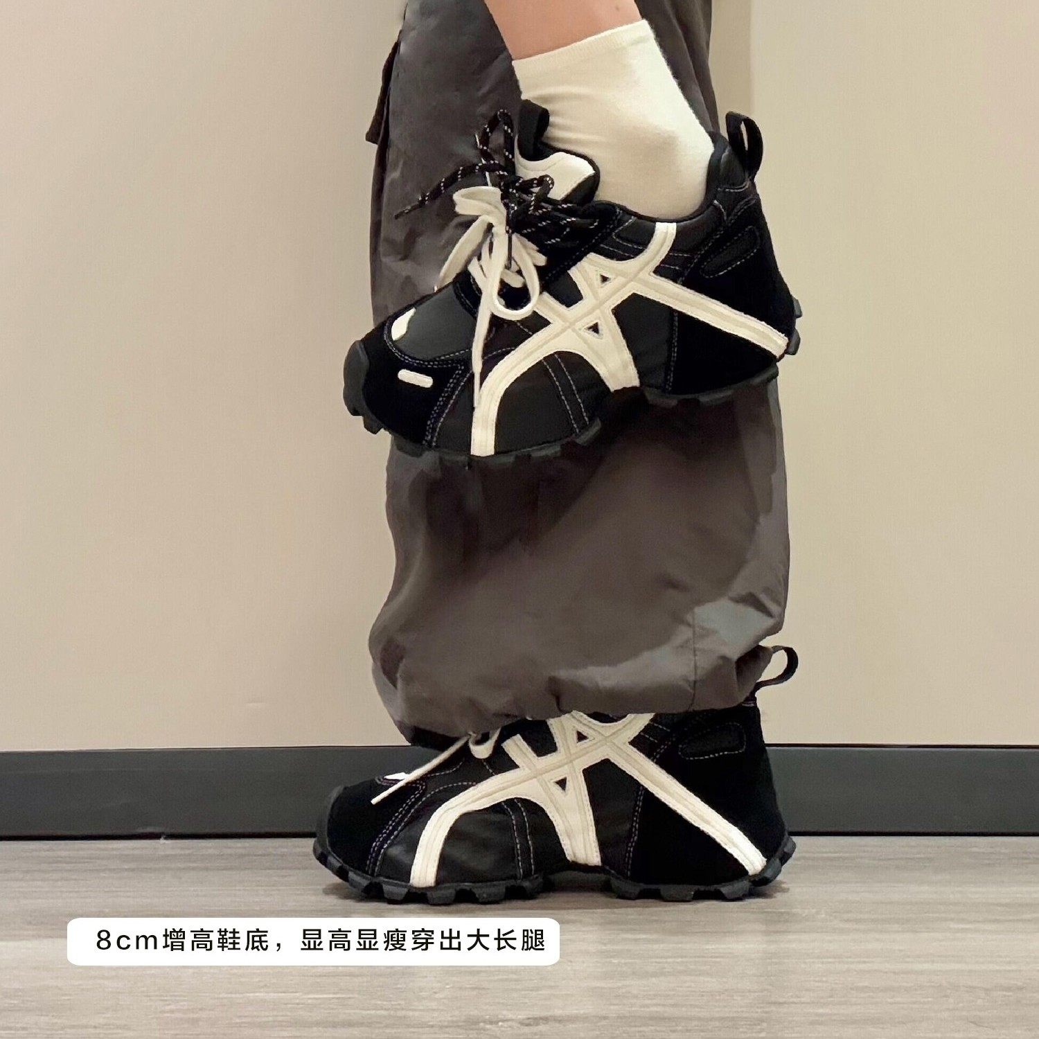 欧洲站8CM内增高老爹鞋女款2025秋冬新款加绒厚底休闲运动德训鞋
