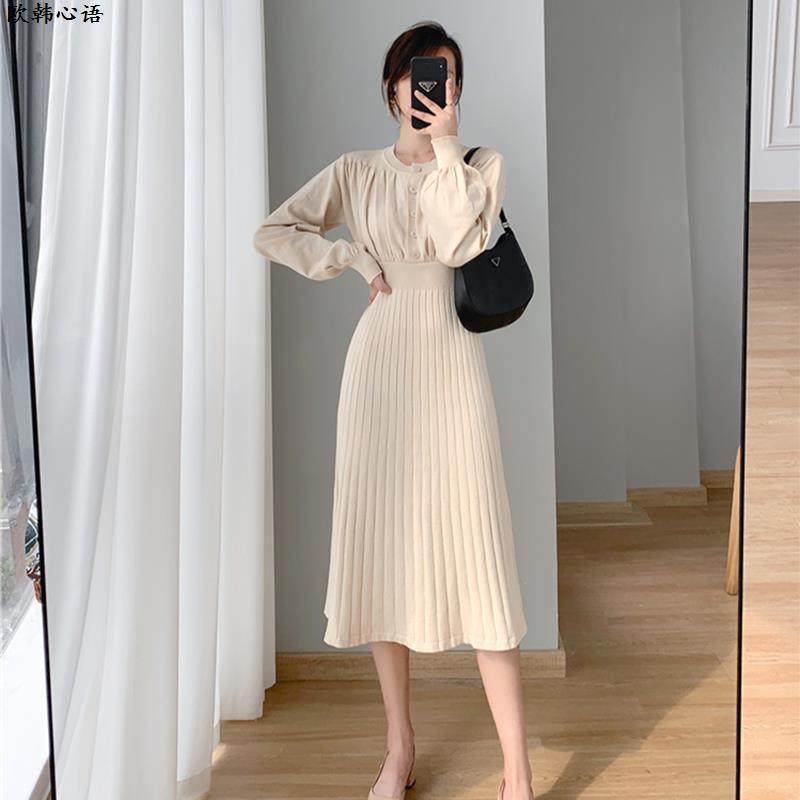 轻奢高级感连衣裙针织裙子女秋冬2025新款显瘦收腰长款紫色毛衣裙