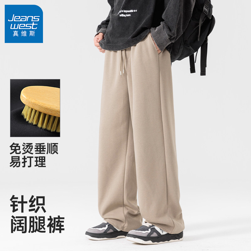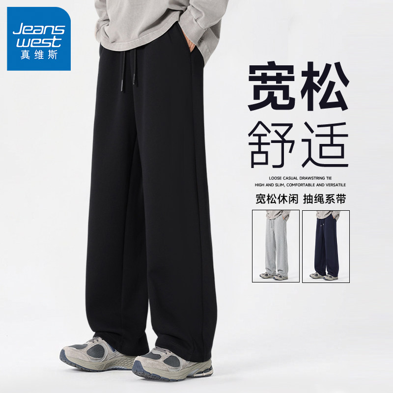 GV真维斯男款加厚裤子春秋加绒宽松直筒休闲裤男士重磅垂感卫裤A