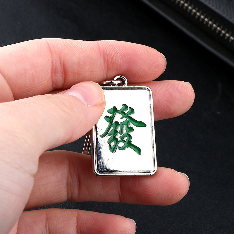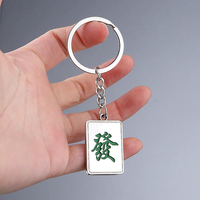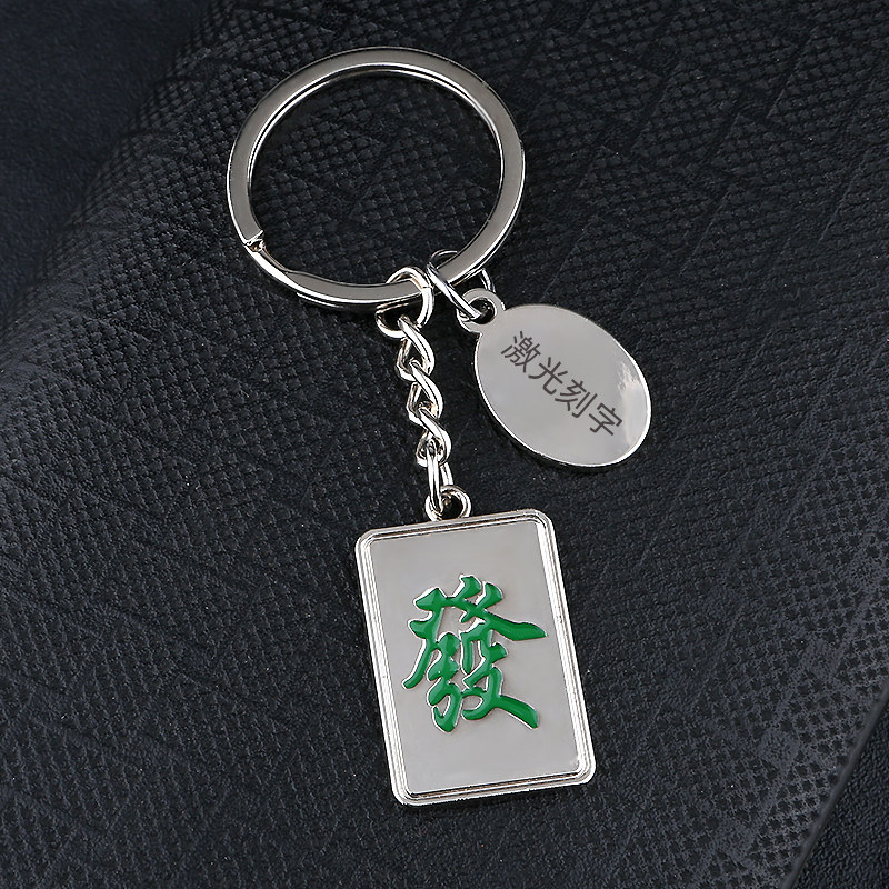 金属發字牌麻将发财钥匙扣创意定制刻字创意立体高档汽车钥匙寓意