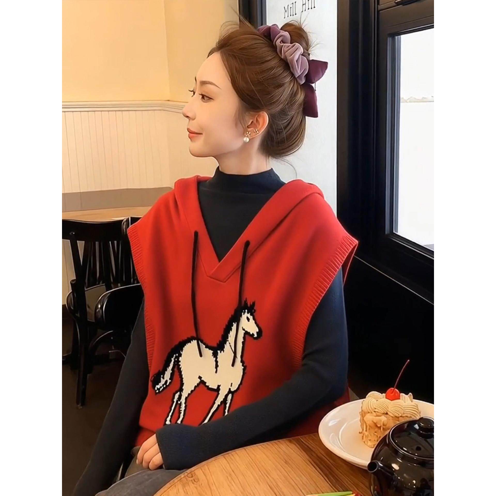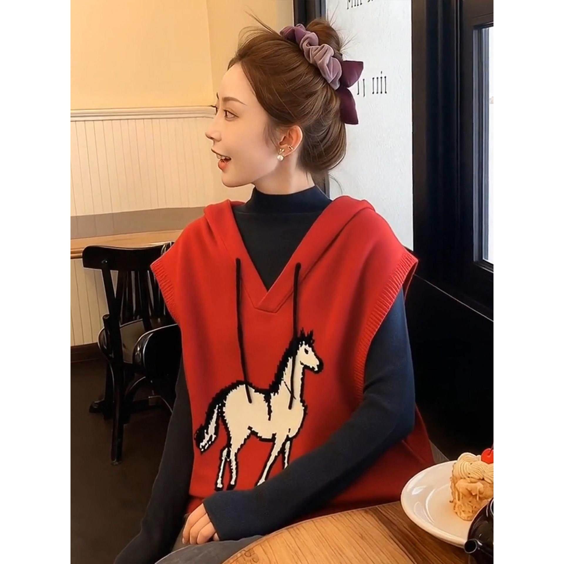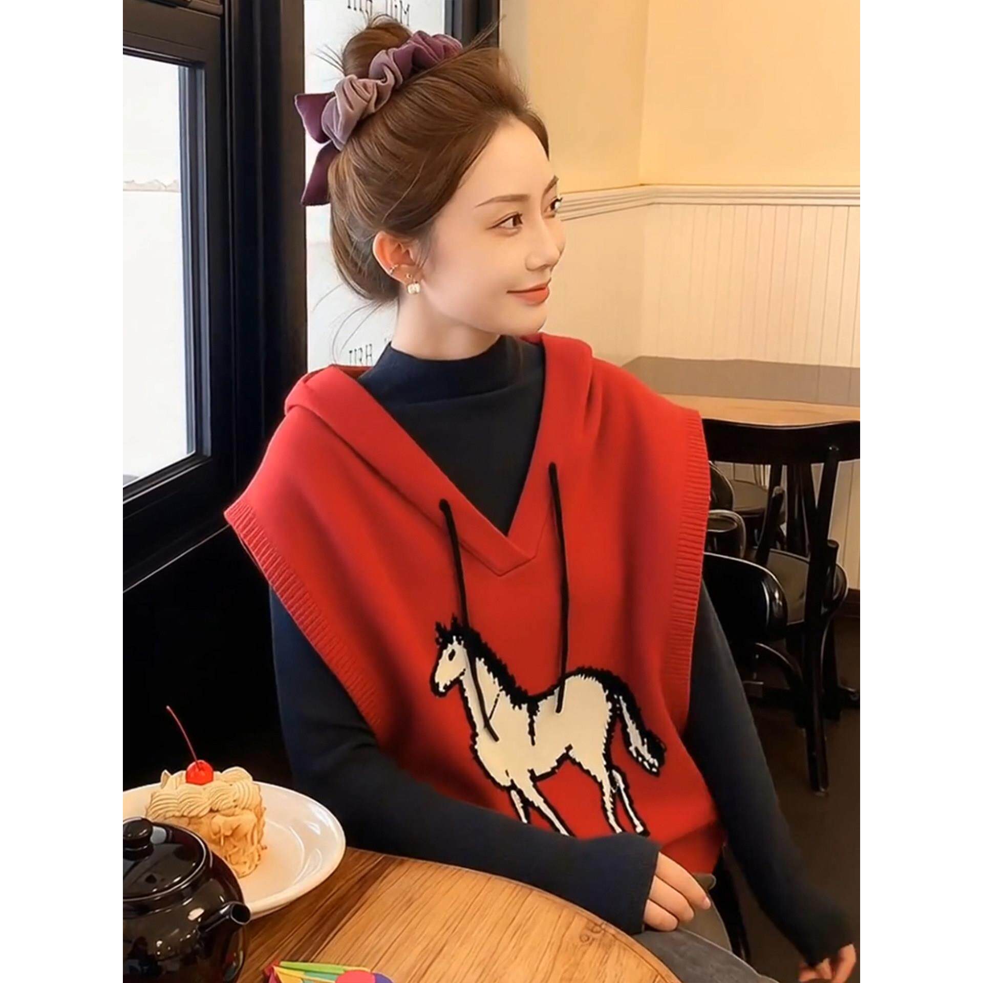 红色小马针织背心叠穿超好看冬装马甲女款2025新款冬外穿内搭上衣
