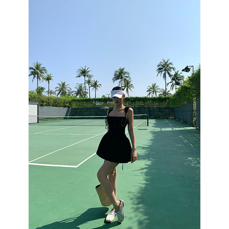 GYOKUU 【网球女孩】黑色可调节肩带吊带款连衣裙
