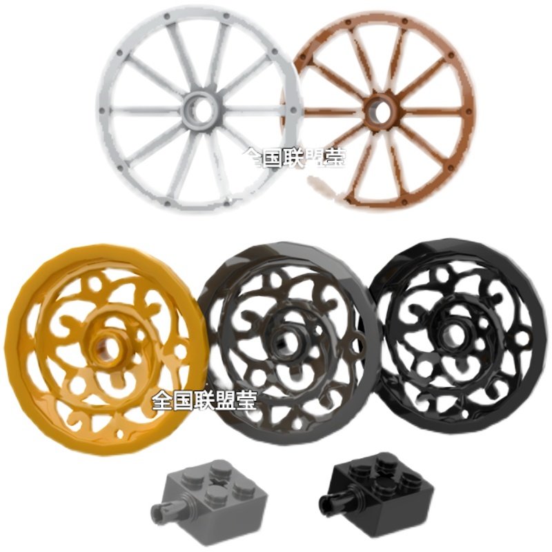 积木马车轮大号43毫米15744花轮33211车轴6232小颗粒兼容拼插