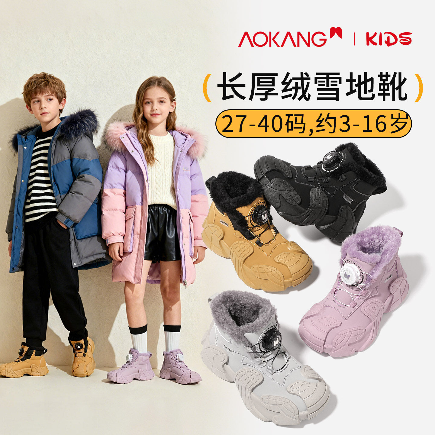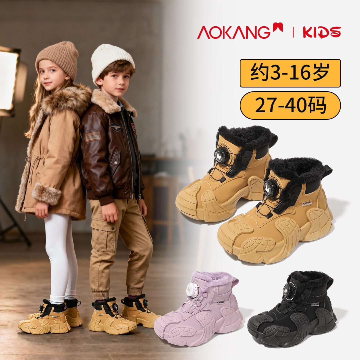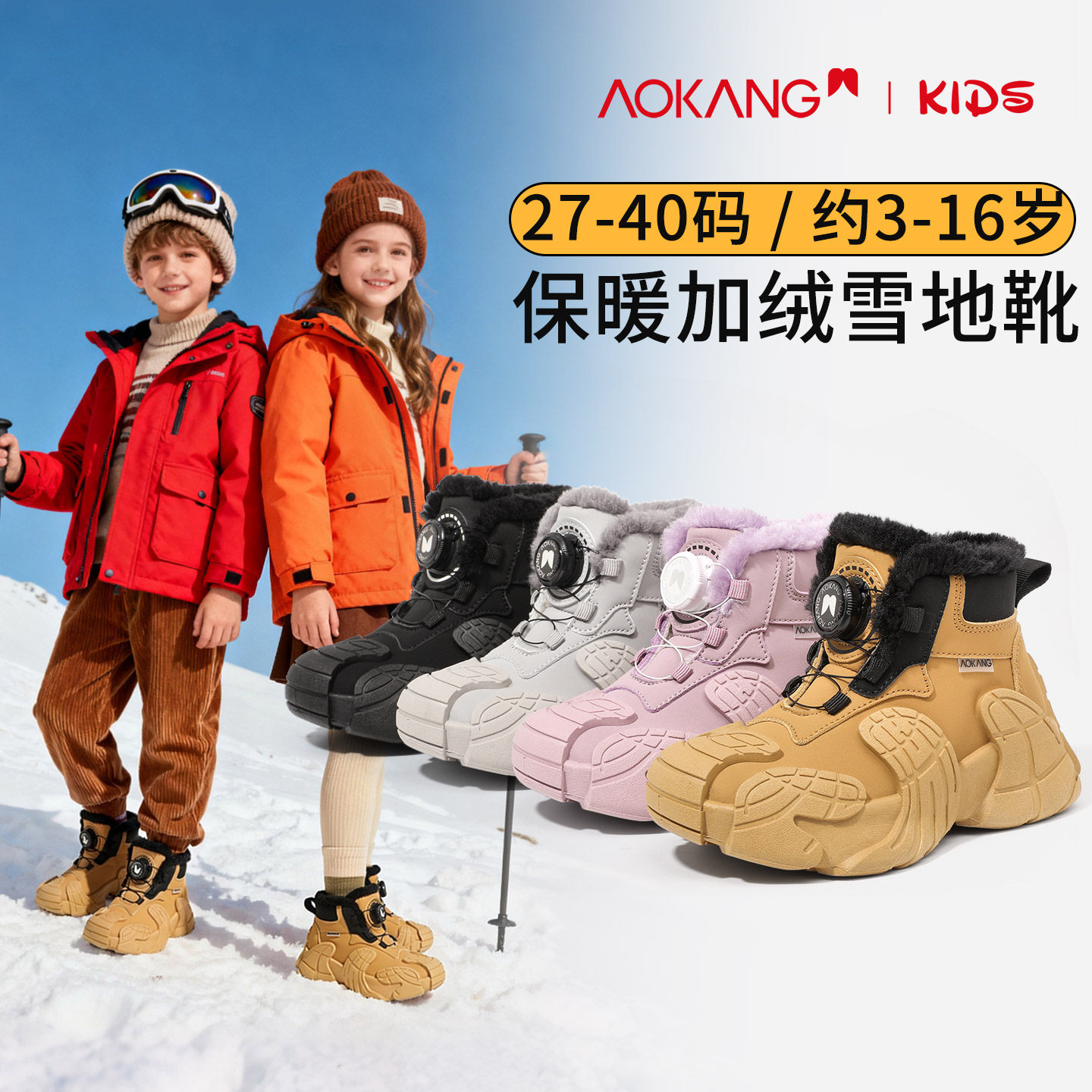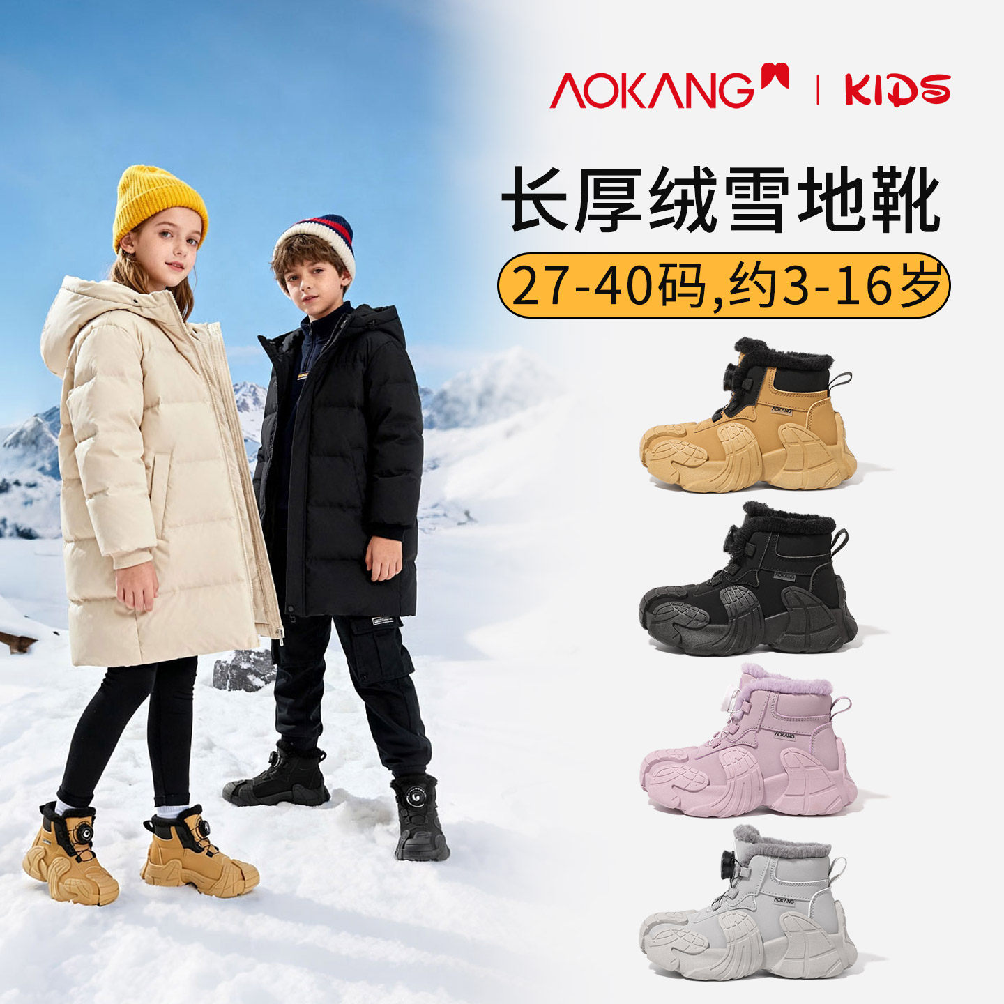 奥康儿童雪地靴2025冬季加绒保暖男童防滑大棉鞋女童短靴运动鞋子
