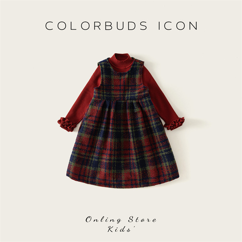 311线报网描述:女童格子背心裙2024冬季新款加绒连衣裙