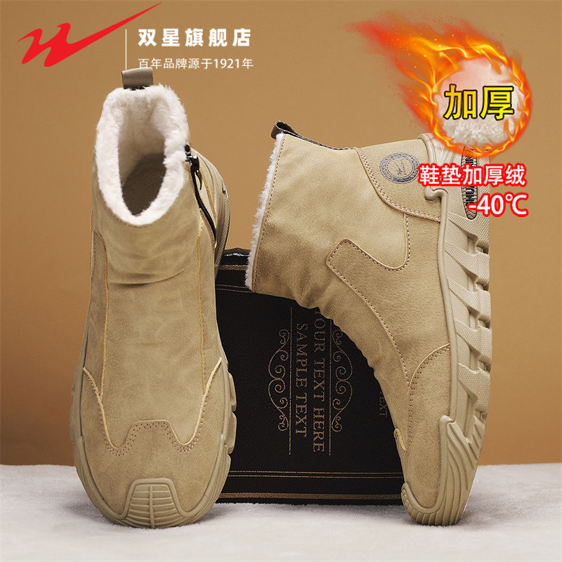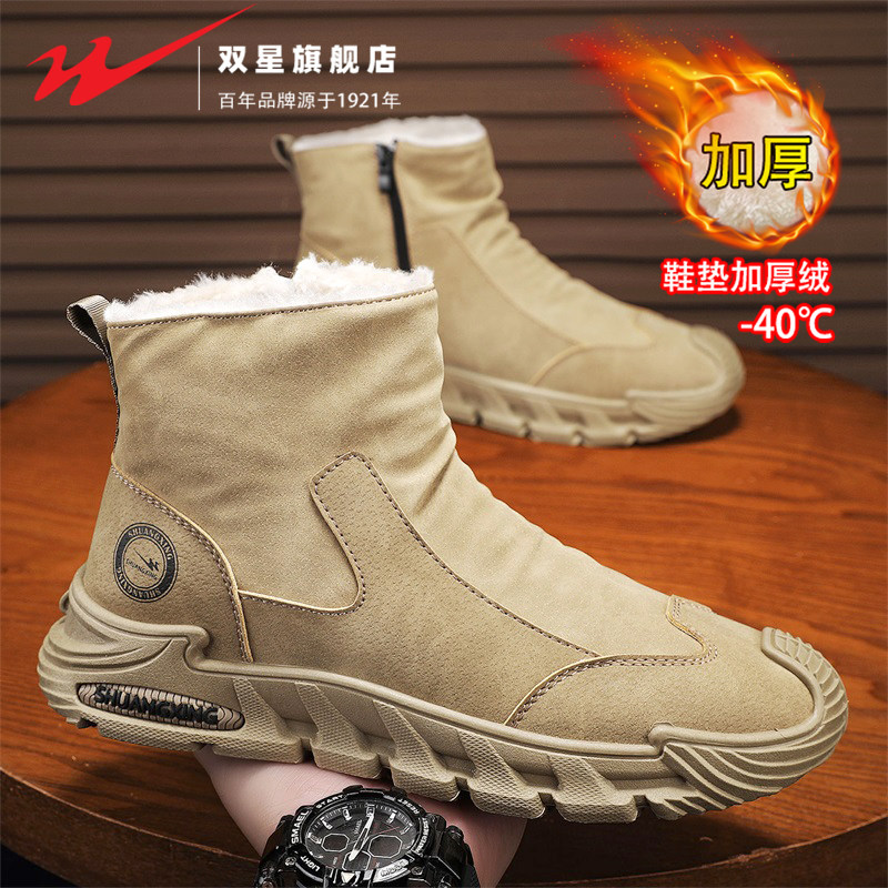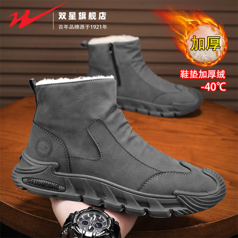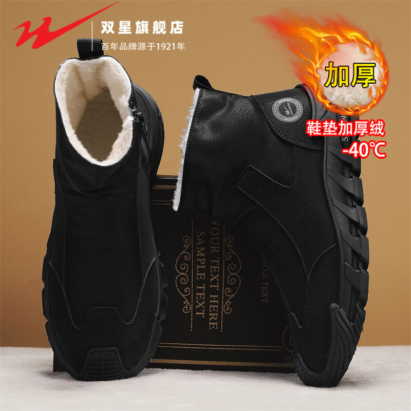 双星高帮马丁男鞋冬季加绒保暖东北大棉鞋户外运动皮毛一体雪地靴