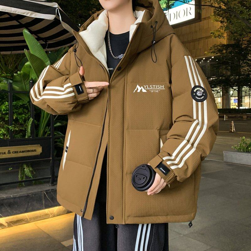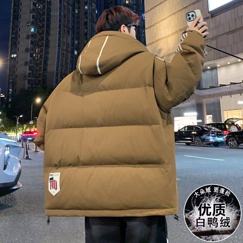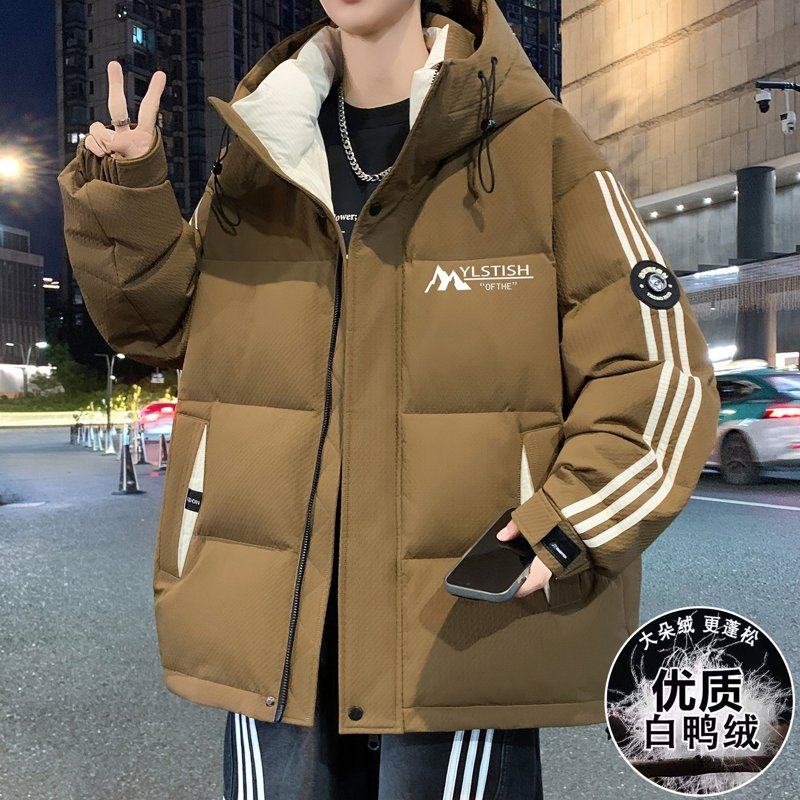 以2025新青少年白鸭绒羽绒服男款连帽加厚宽松初中学生帅气外套純